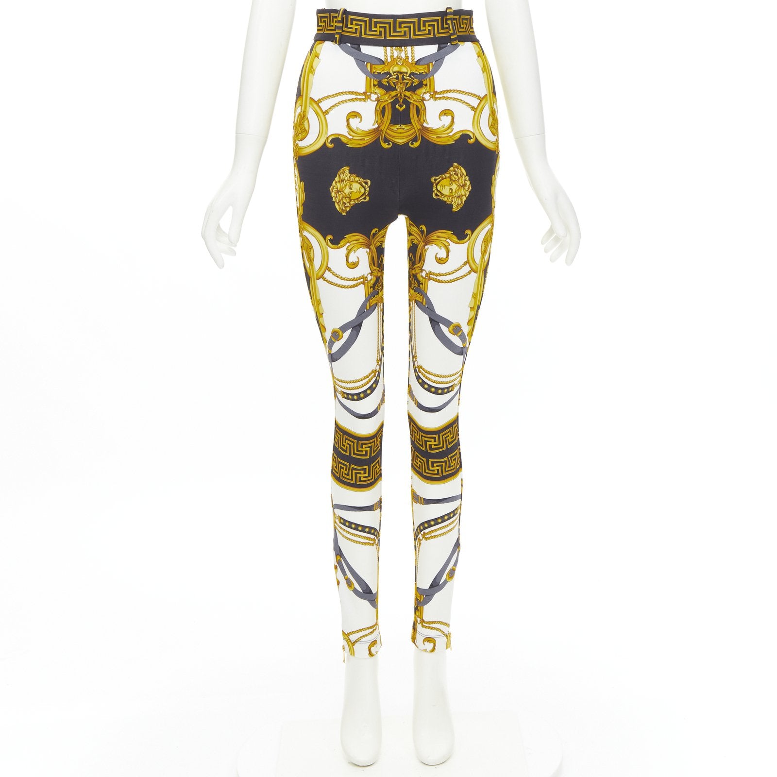 VERSACE Runway Rodeo Barocco black gold harness stretch legging pants IT42 M
