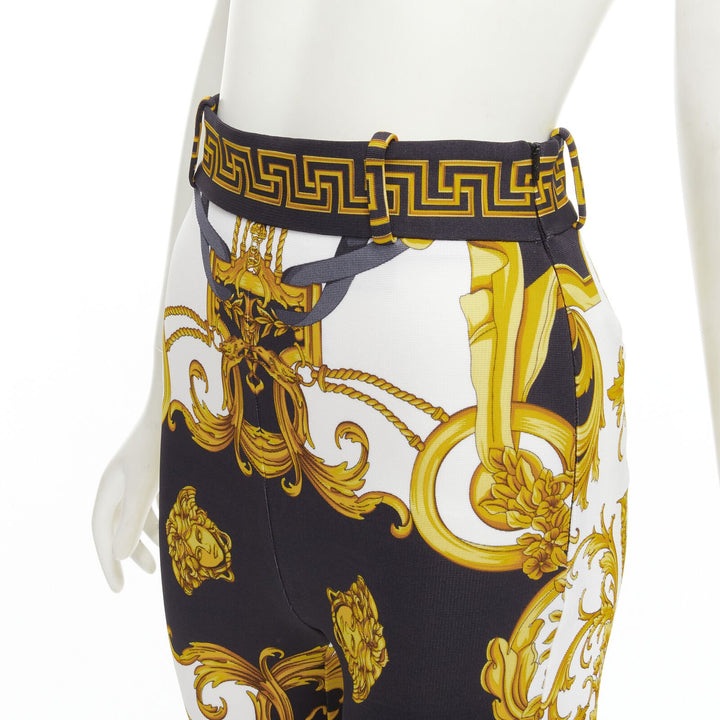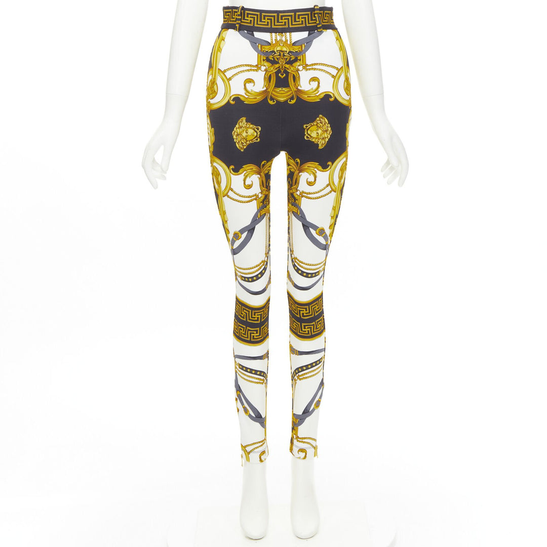 VERSACE Runway Rodeo Barocco black gold harness stretch legging pants IT44 L