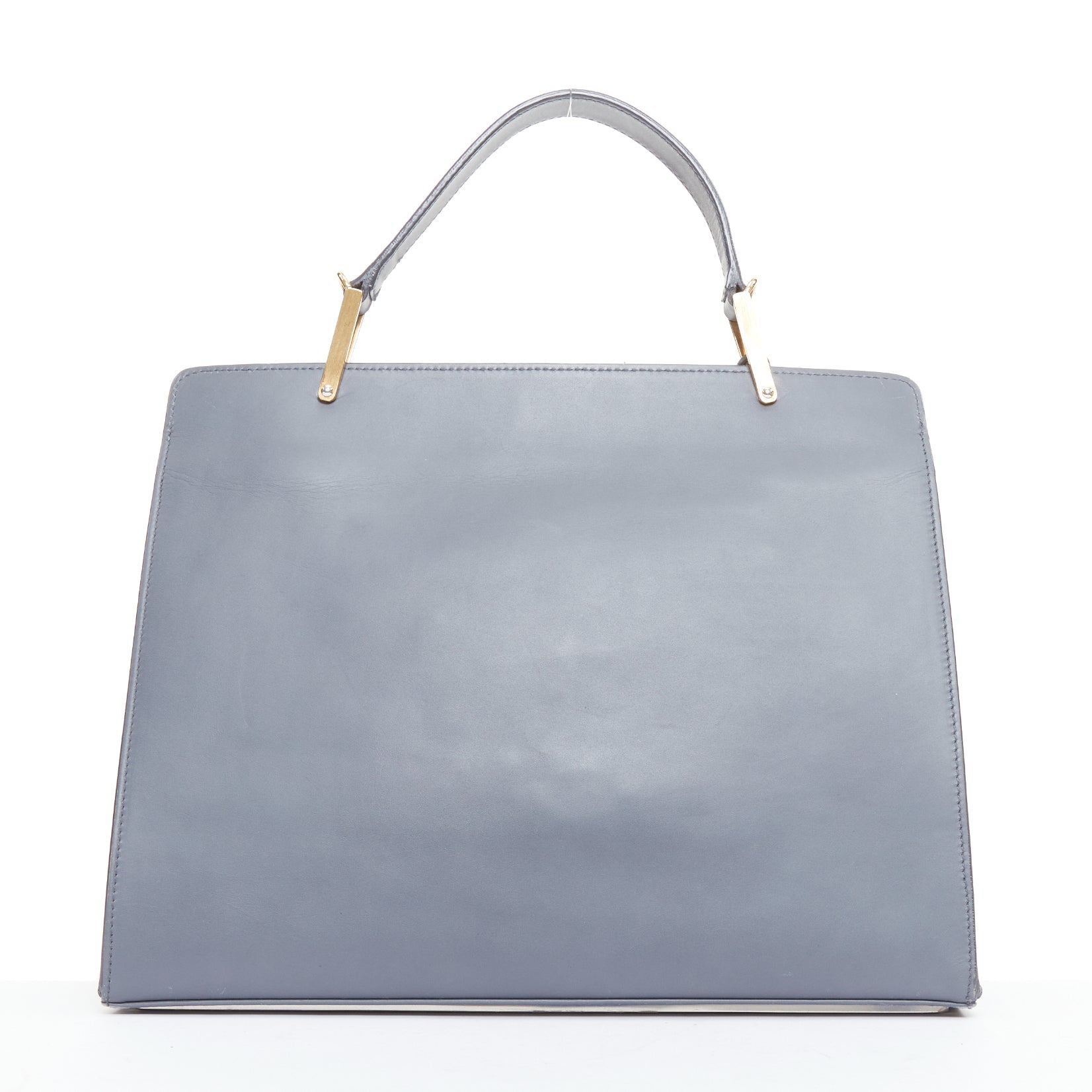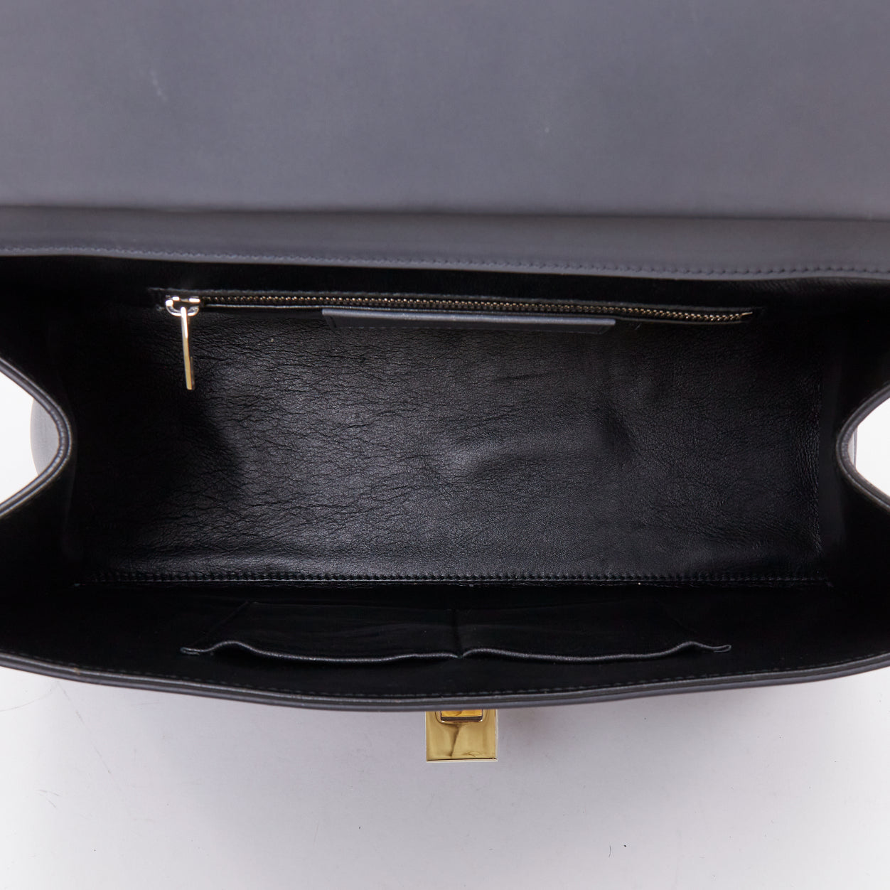 BALENCIAGA Le Dix Cartable Medium grey leather gold hardware structured top handle flap bag