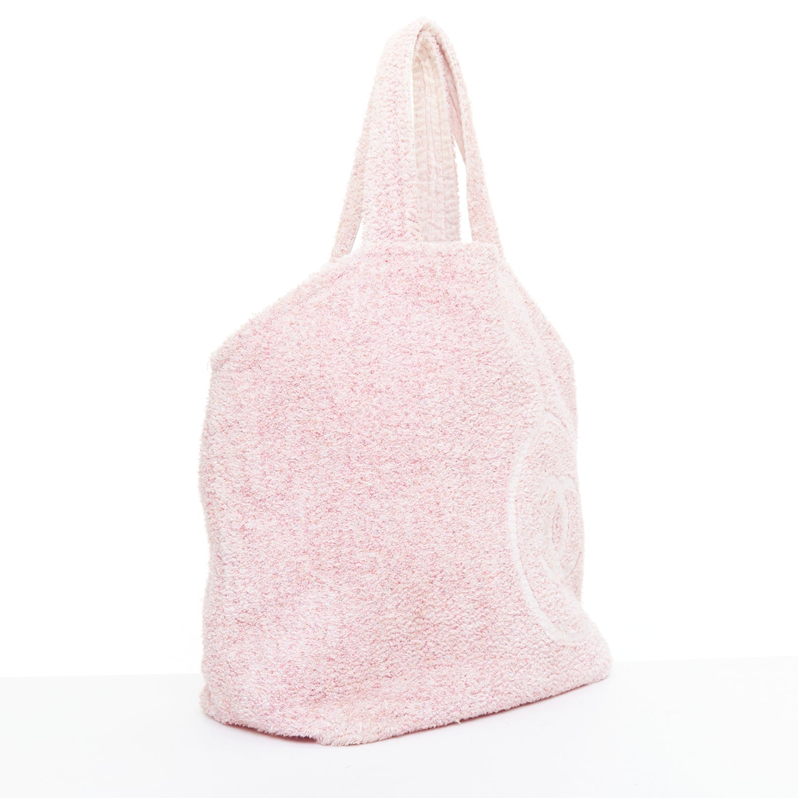CHANEL Cruise Line pink cotton towelling CC big beach tote bag