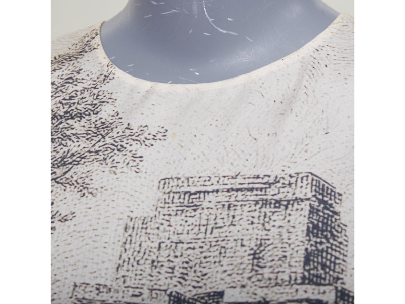 Extra Details: Sleeveless top with a round neck and an all-over historical architectural print in black and white