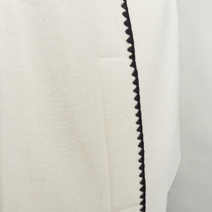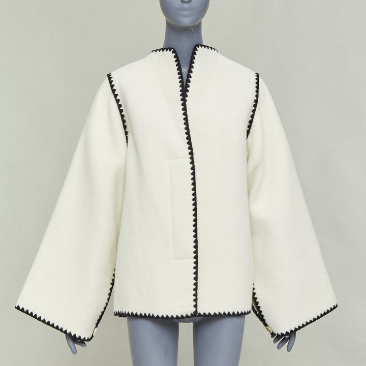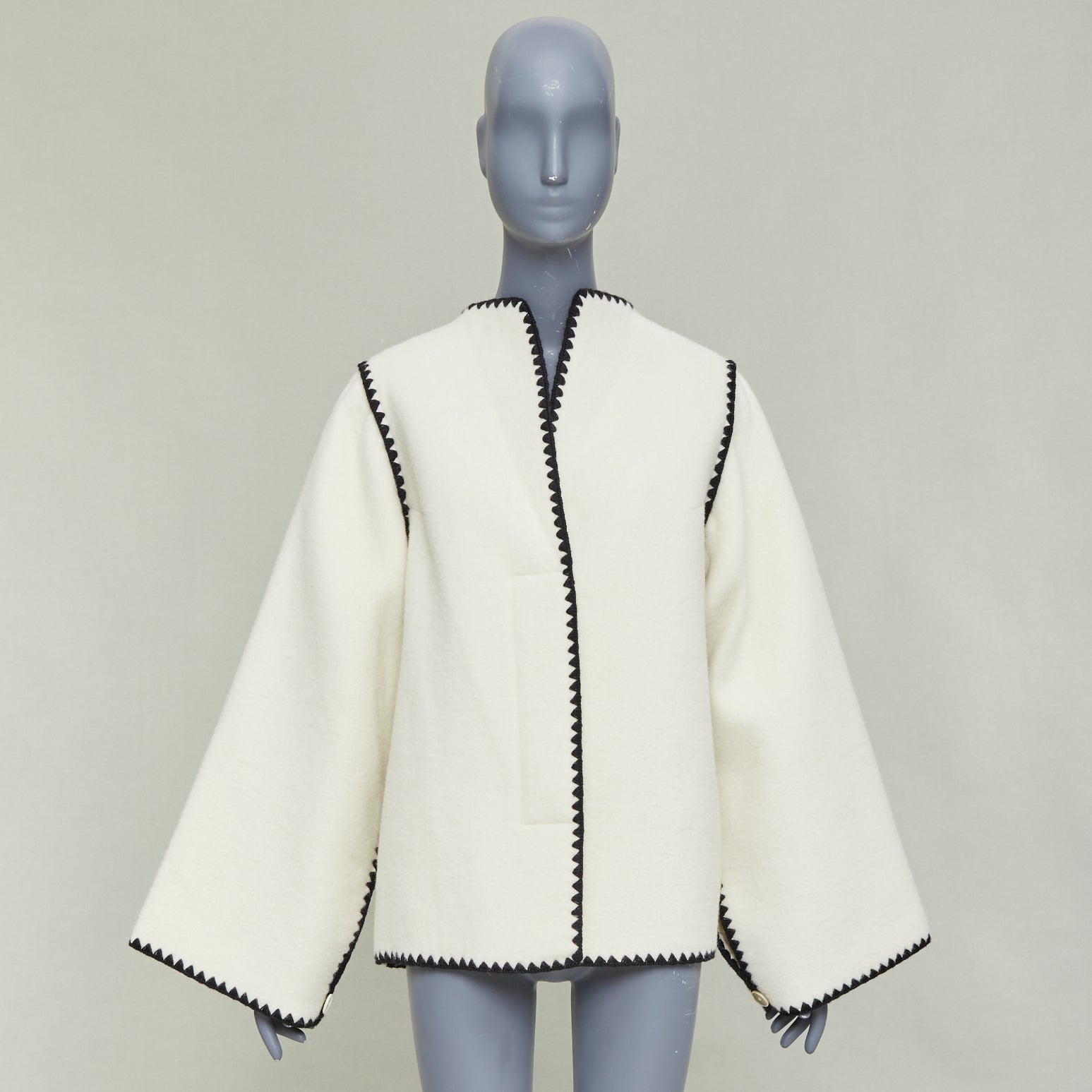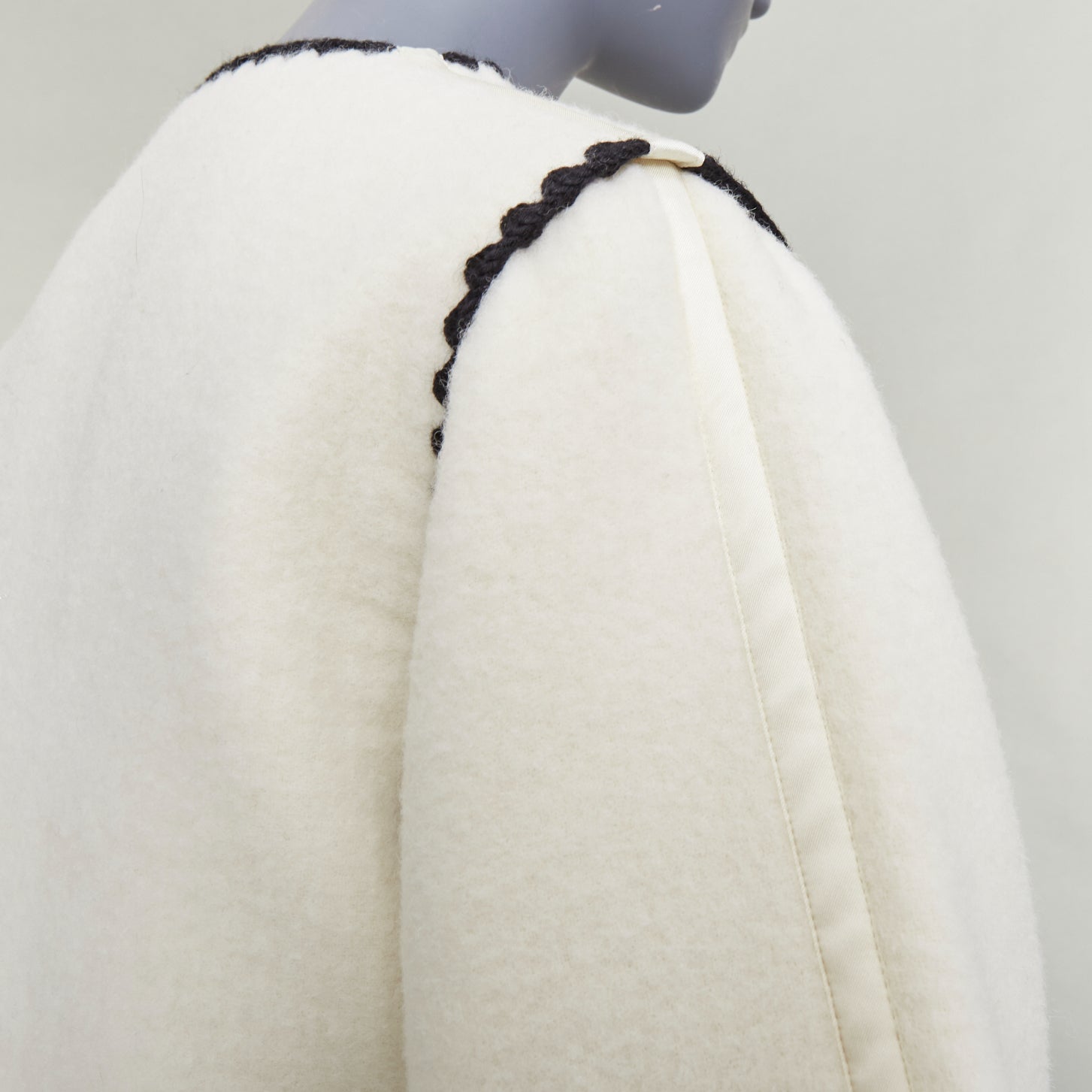 JIL SANDER 2019 Runway cream llama blend black scalloped trim wide sleeve coat FR34 XS