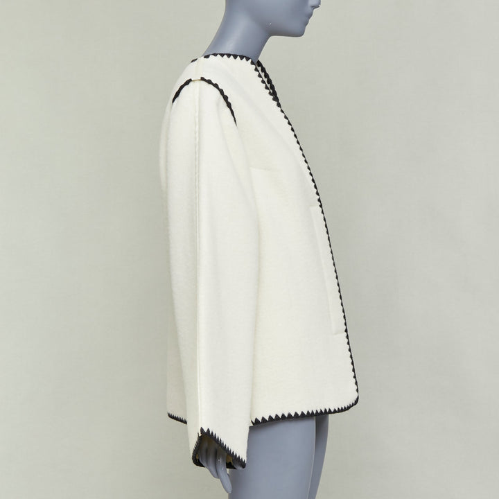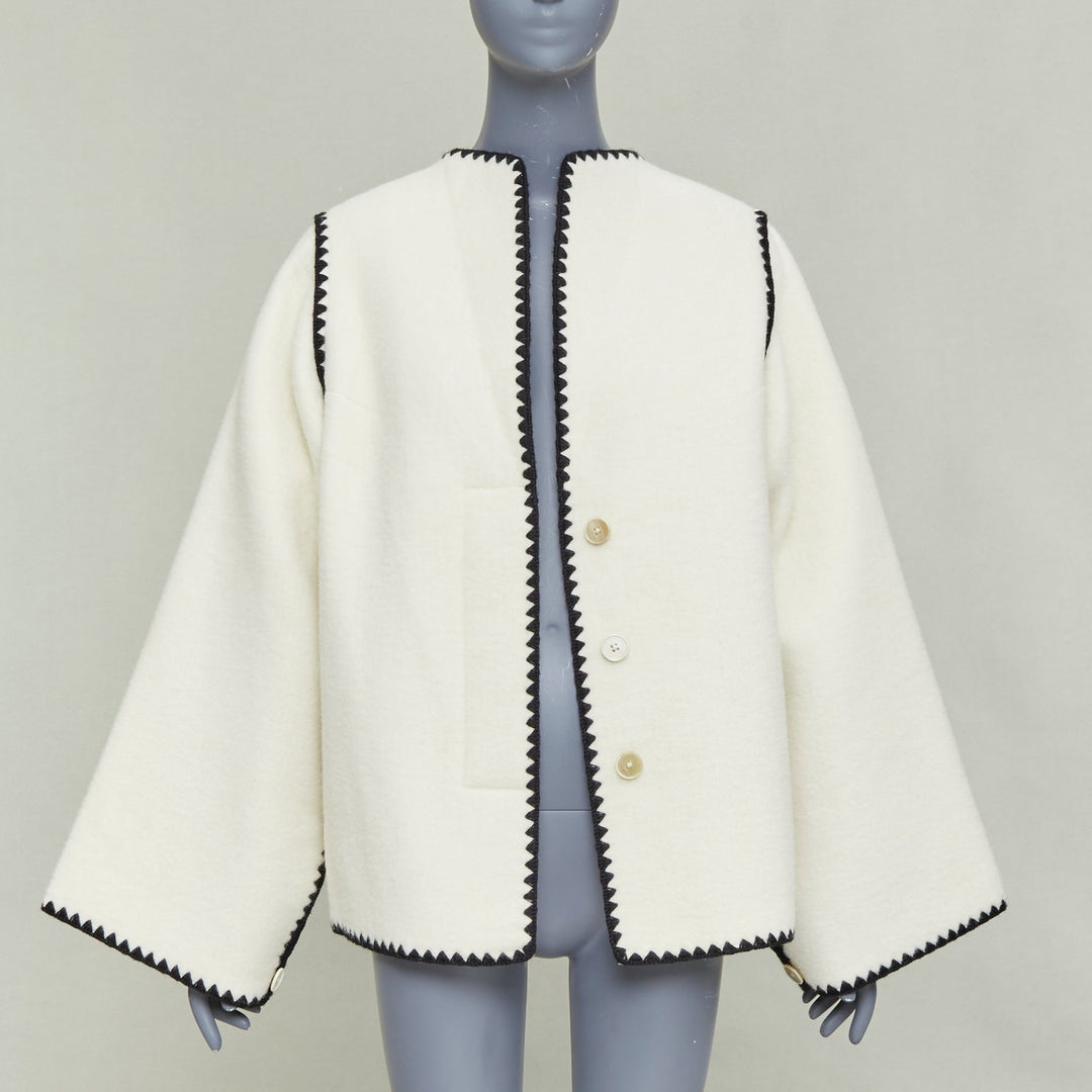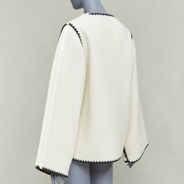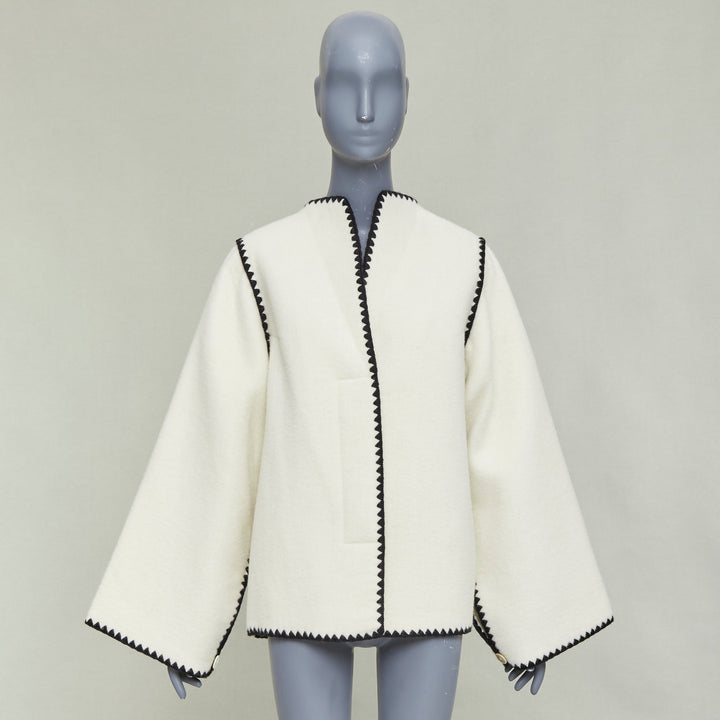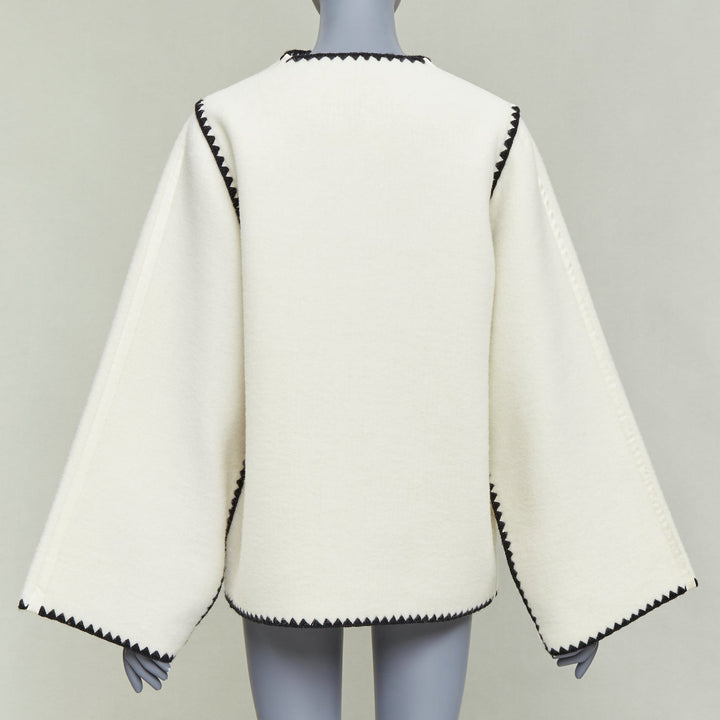 JIL SANDER 2019 Runway cream llama blend black scalloped trim wide sleeve coat FR34 XS