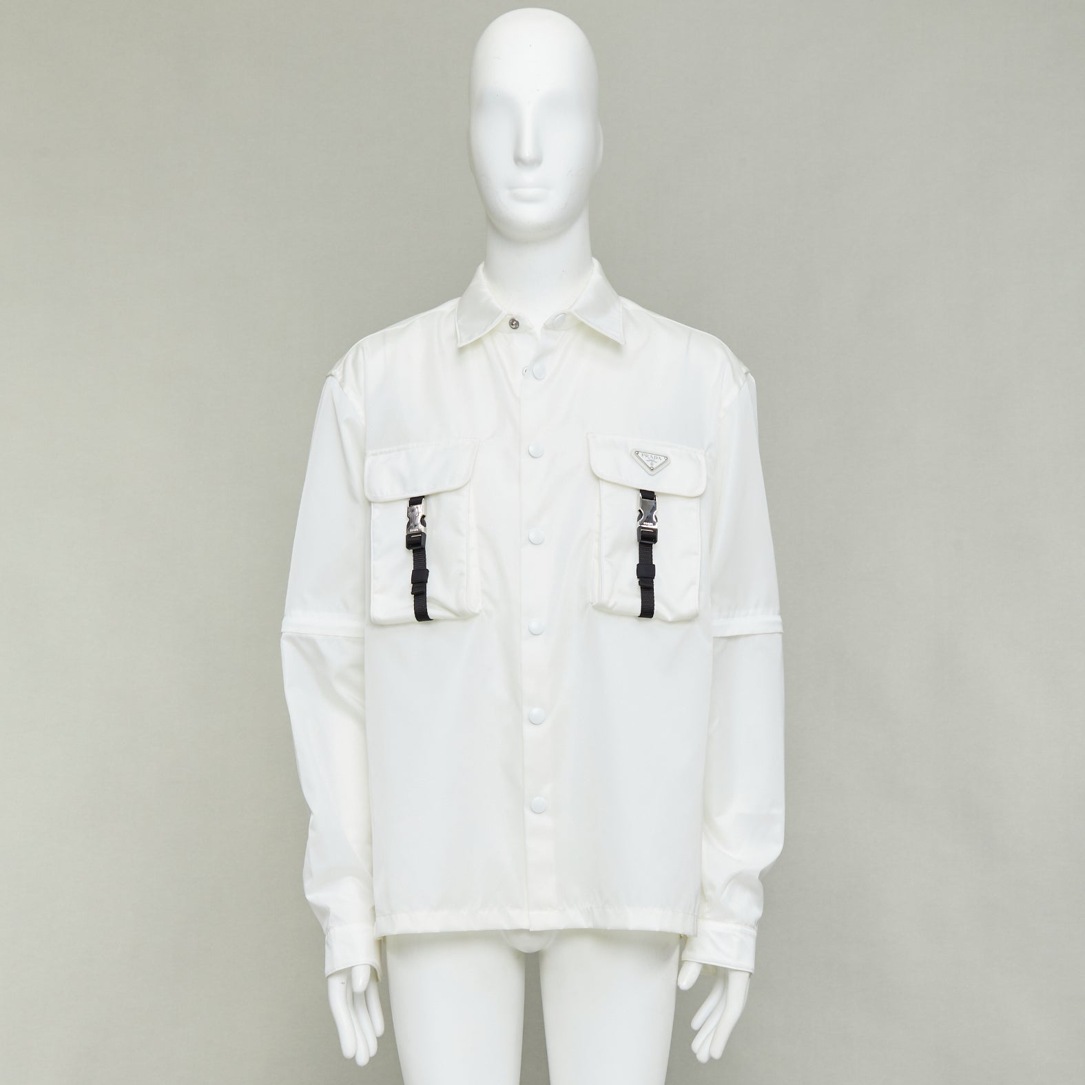 PRADA 2021 Re-Nylon nylon technical buckles pocket transformable shirt jacket XL