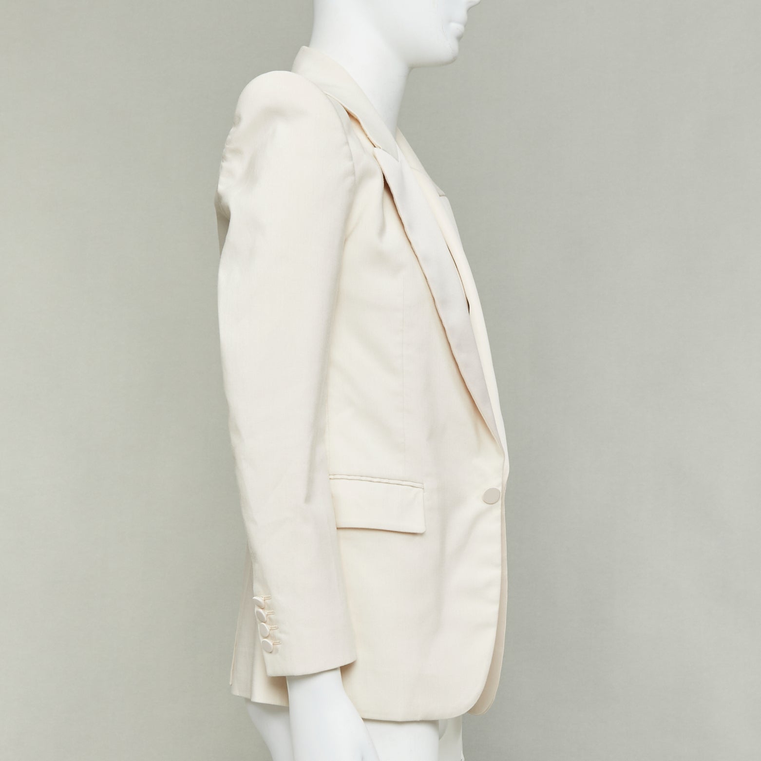SAINT LAURENT 2023 cream multi silk blend satin lapel tuxedo blazer IT44 XS