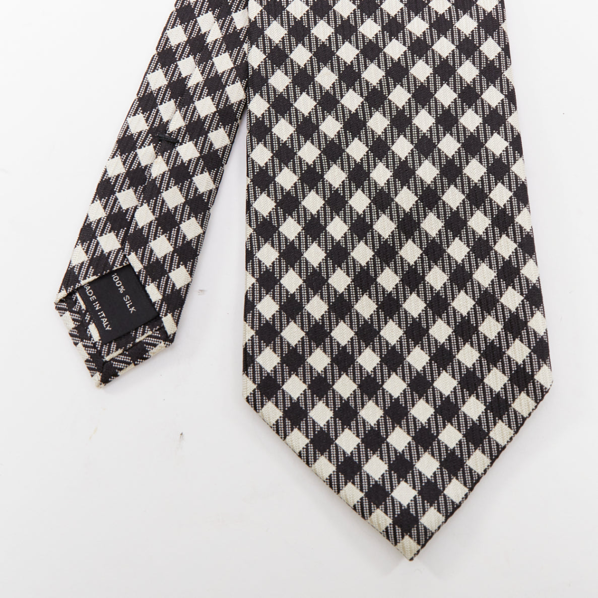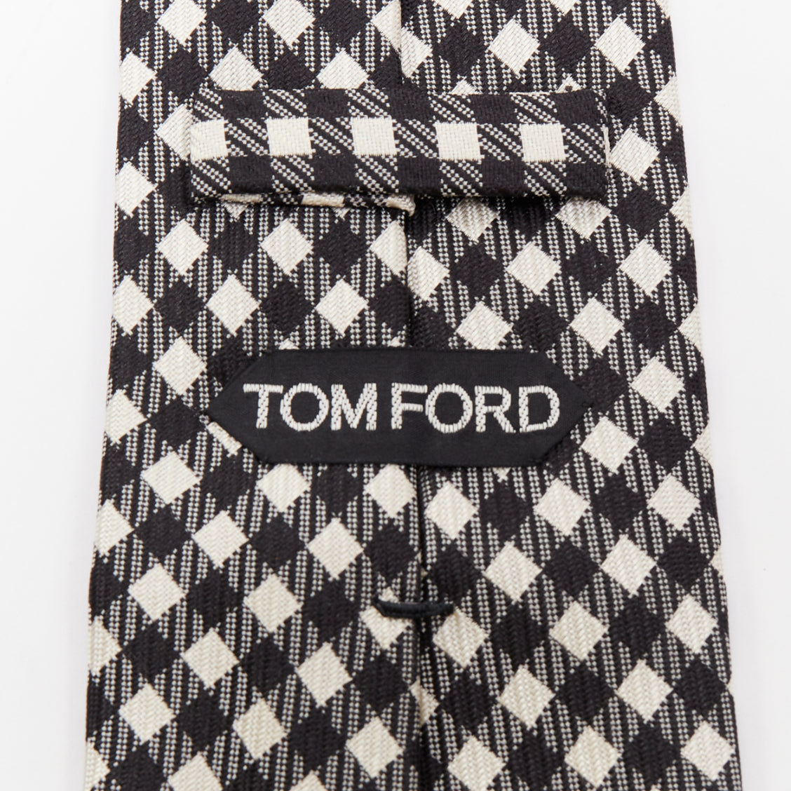 TOM FORD 100% silk black white checkered weave dress tie