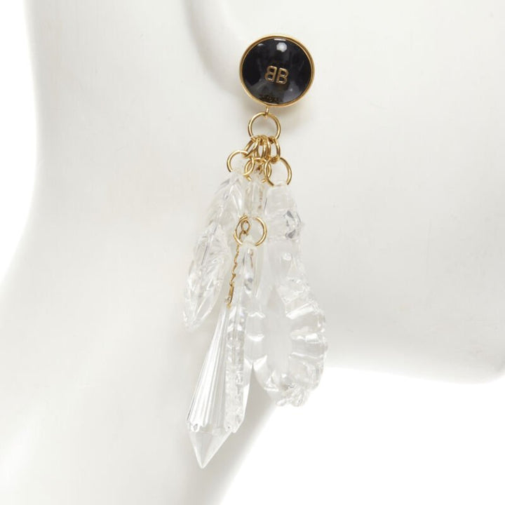 BALENCIAGA Demna 2018 Pic Pendant BB logo clear Chandelier earrings