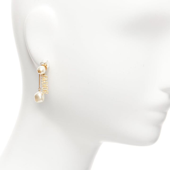 DIOR Tribale J'adior gold faux pearl logo drop star pin asymmetric stud earrings pair