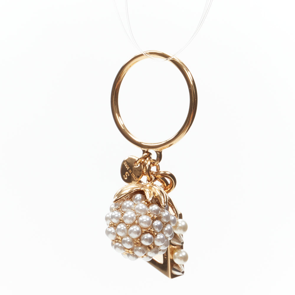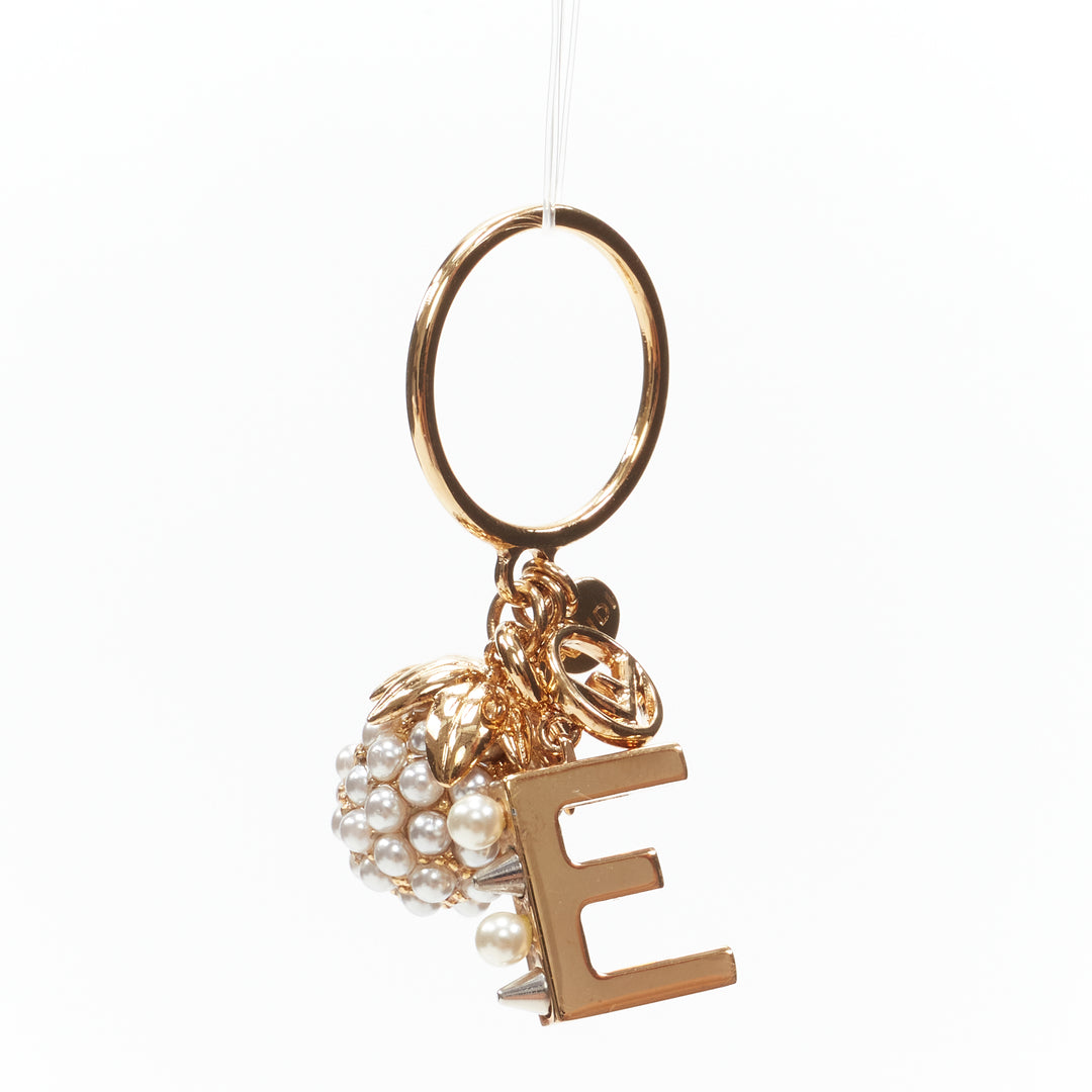 FENDI gold tone E alphabet pearl spike embellished berry charm ring