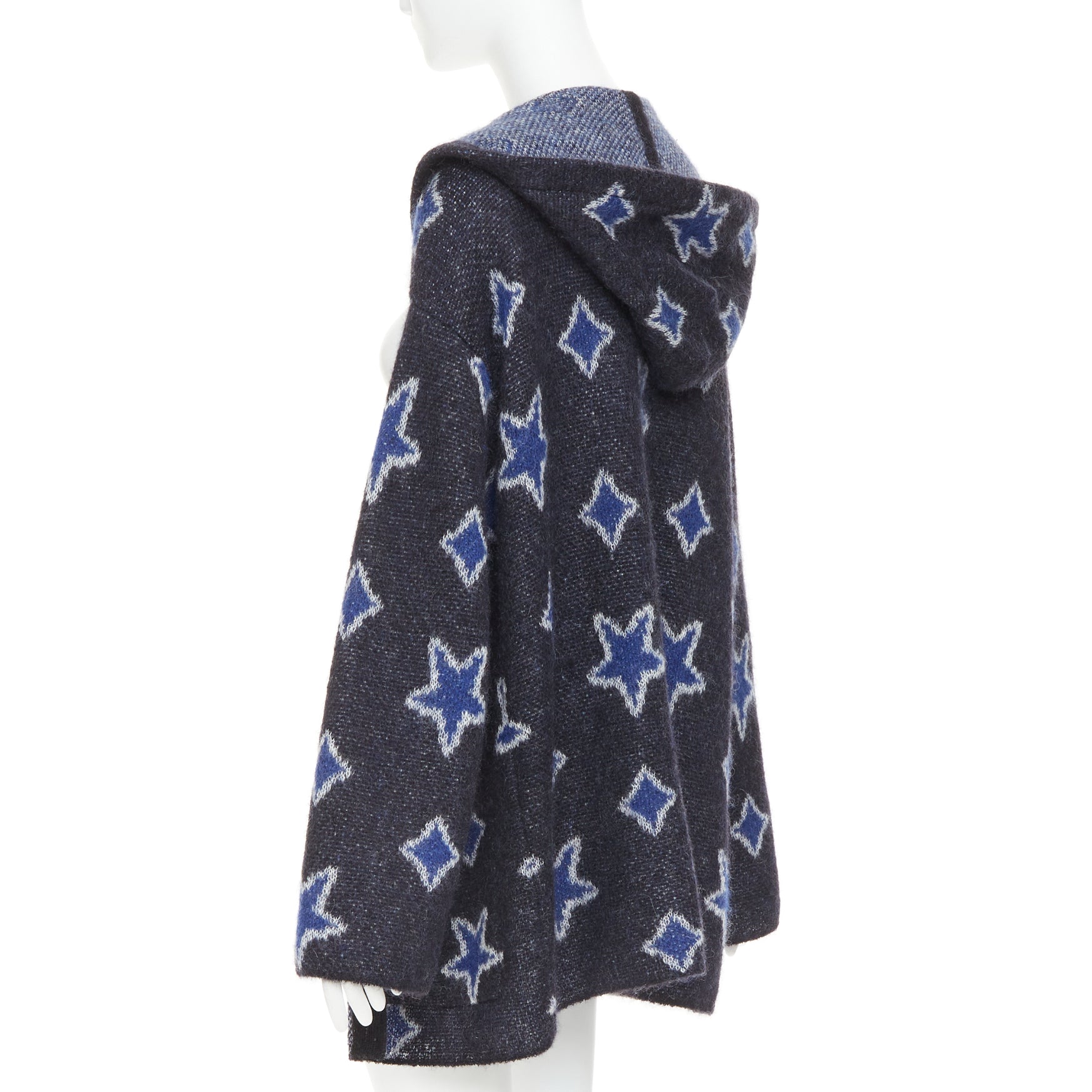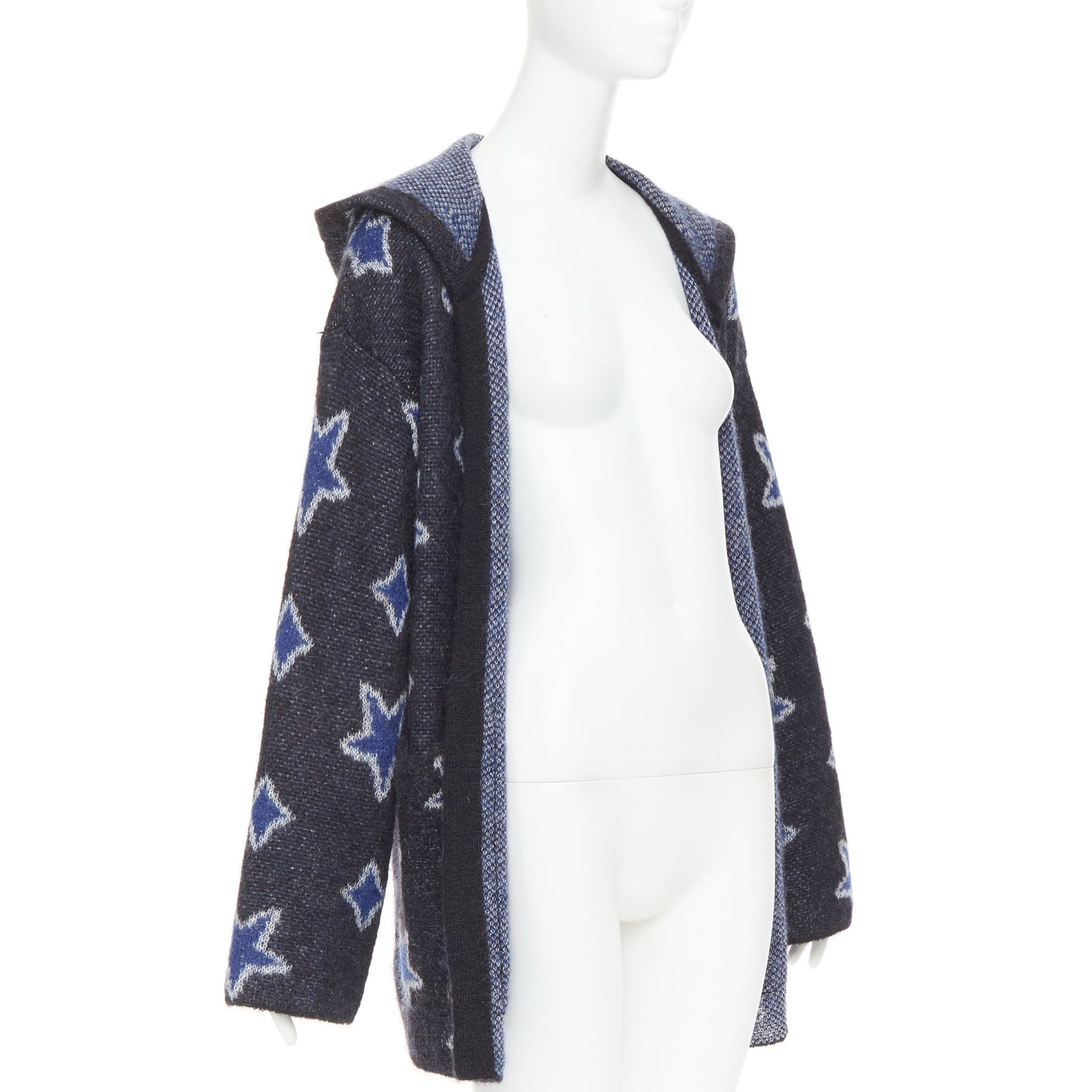 SAINT LAURENT Hedi Slimane 2016 super kid mohair navy star intarsia hooded cardigan XS