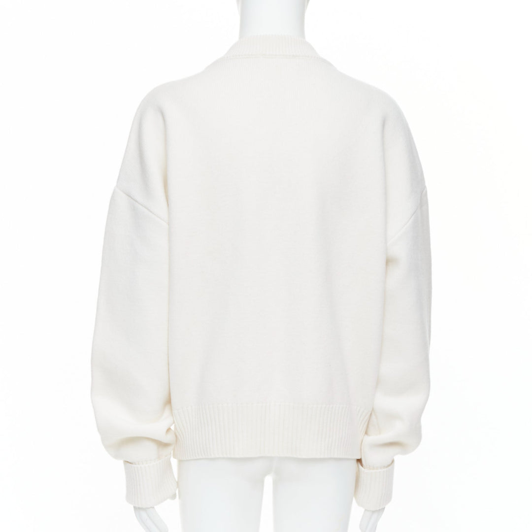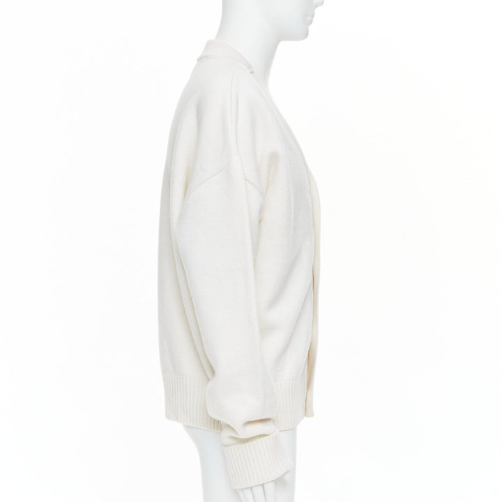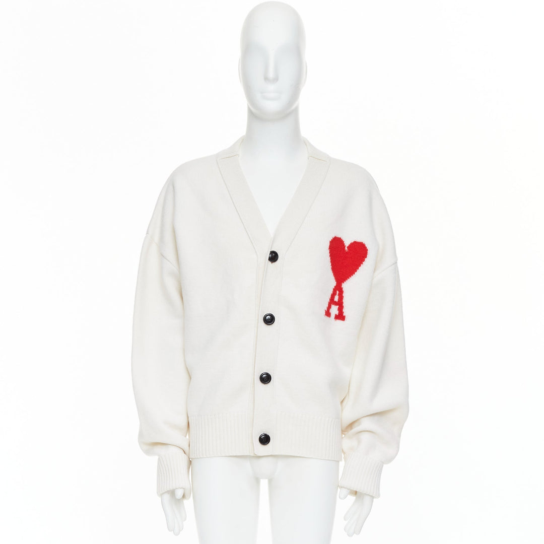 AMI De Coeur cream virgin wool heart logo buttoned cardigan XL
