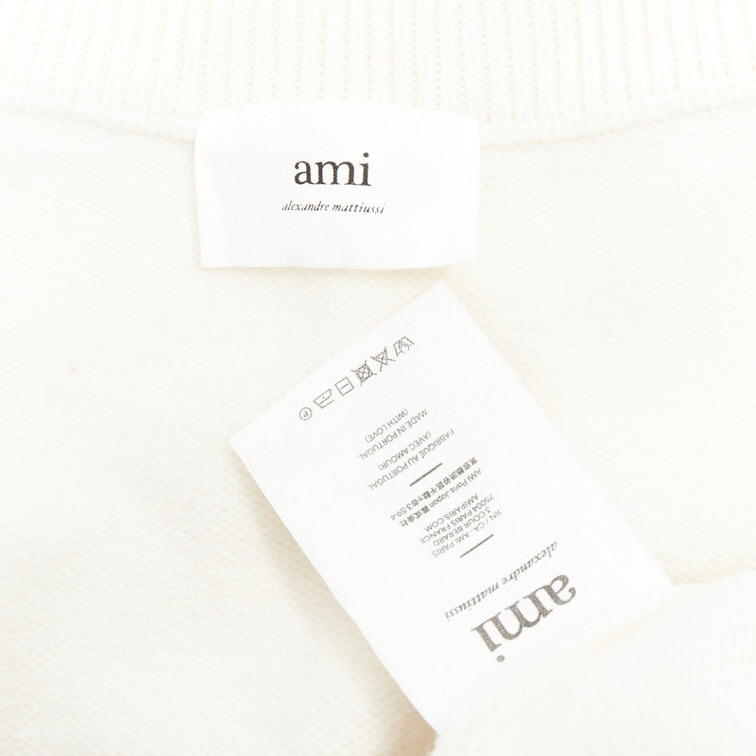 Extra Details: A symbol of Ami Paris since 2016, the Ami de Cœur logo is named after the French expression for "friend of the heart". Made of white wool, this intarsia cardigan has ribbed-knit trims.