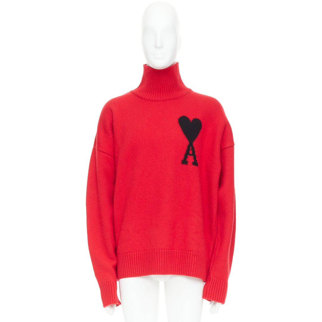 Extra Details: A symbol of Ami Paris since 2016, the Ami de Cœur logo is named after the French expression for "friend of the heart". Made of red wool, this intarsia turtleneck has ribbed-knit trims.