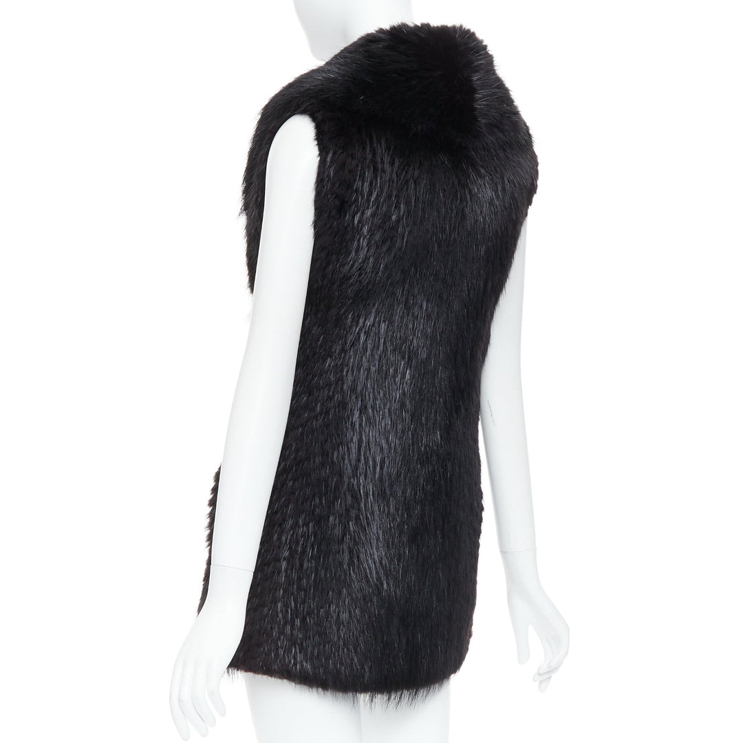 CASSIN NEW YORK black genuine fur pocketed shawl collar vest jacket Sz.P XS