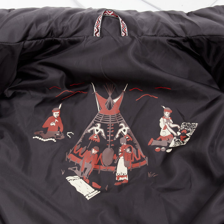 Extra Details: Reversible. The other side is solid black with ethnic uncontacted people print and a Waltzing Matilda tag. Padded throughout.
