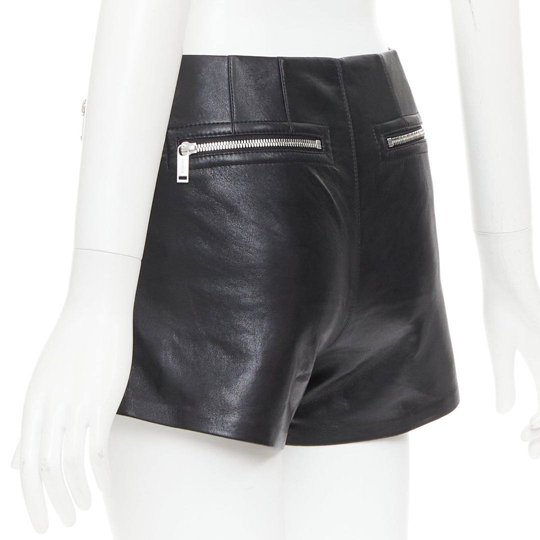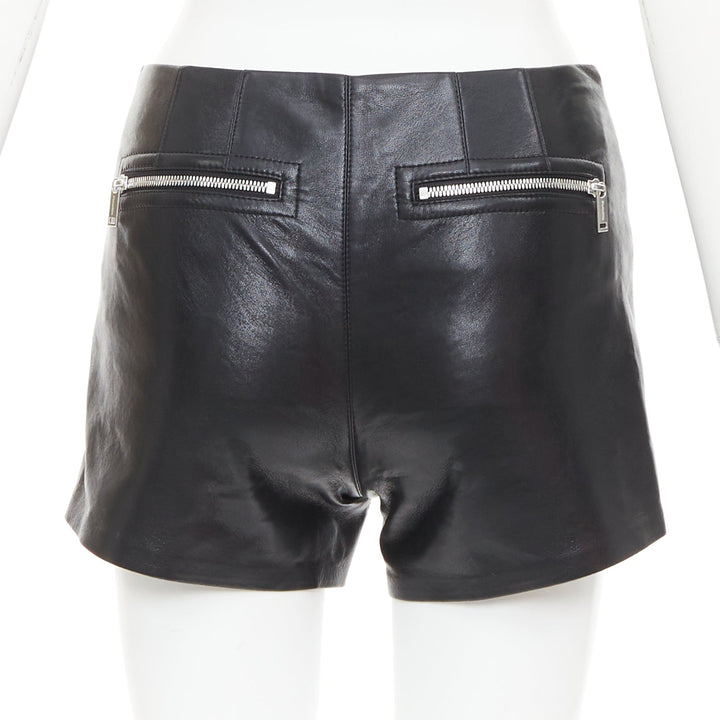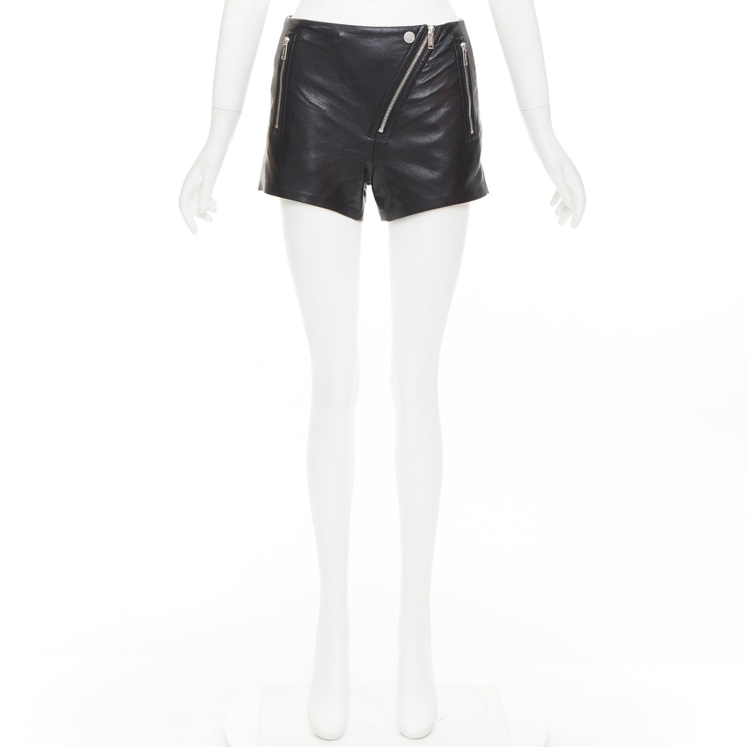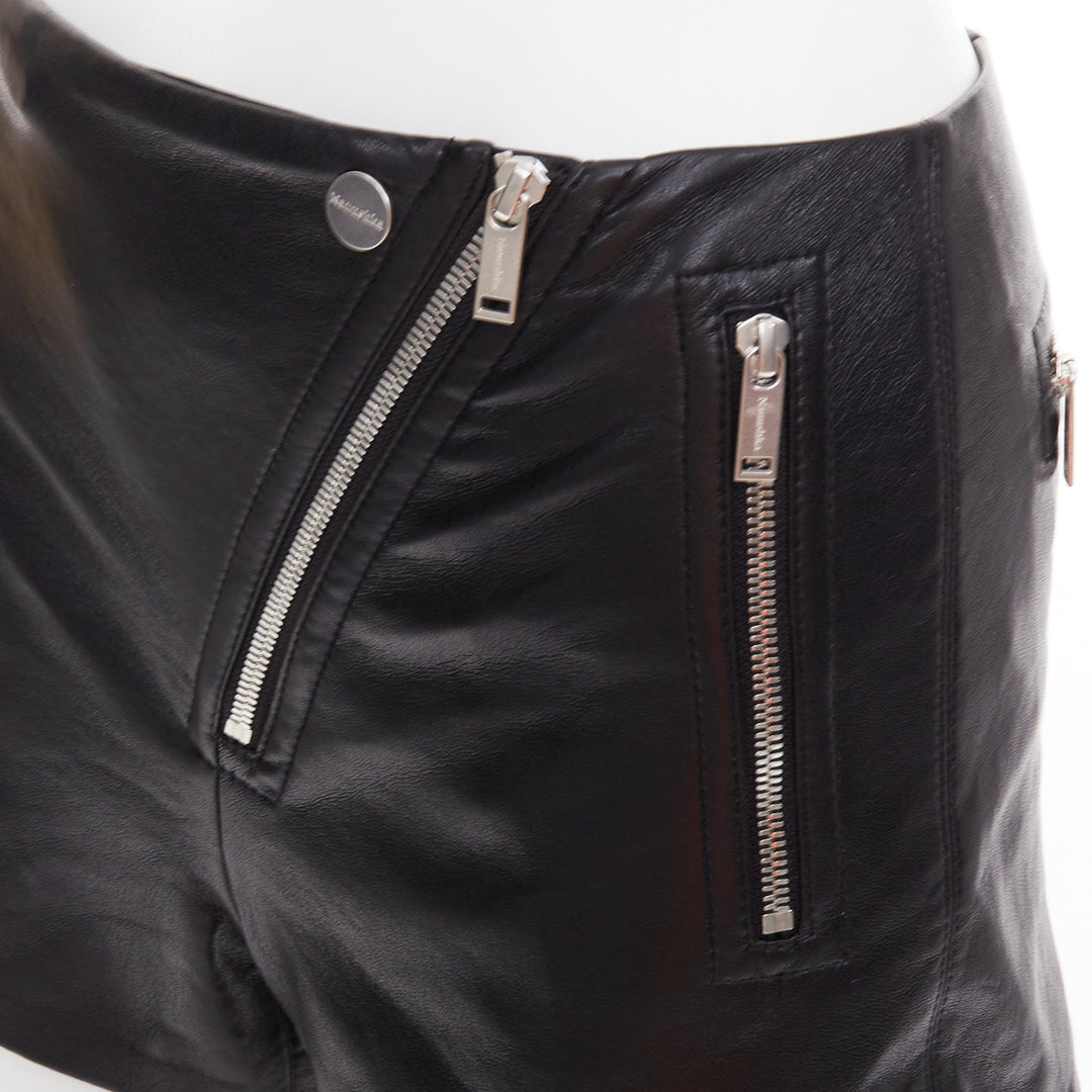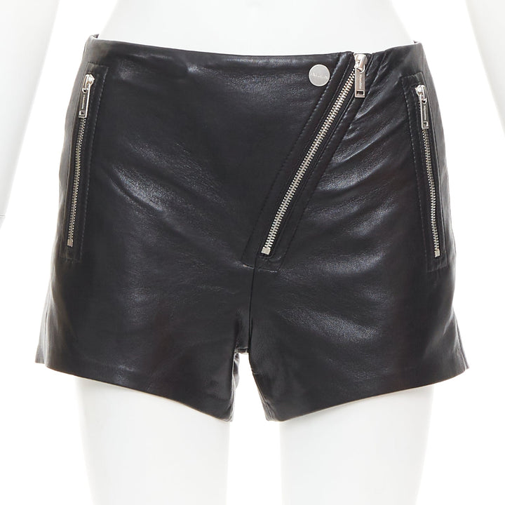 NANUSHKA black faux leather diagonal zip short mini biker shorts XXS