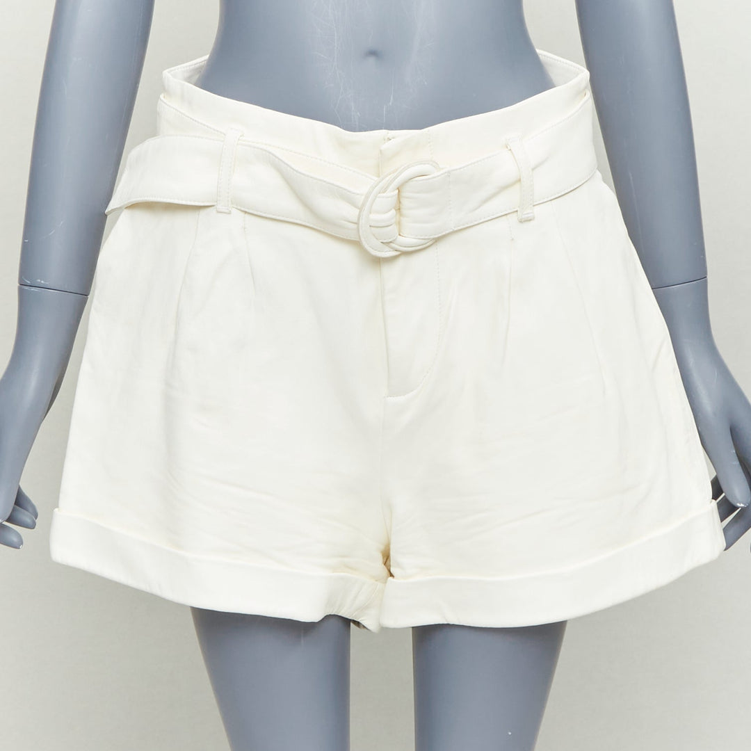 FRAME butter cream lamb leather high waisted belted paperbag shorts 27"