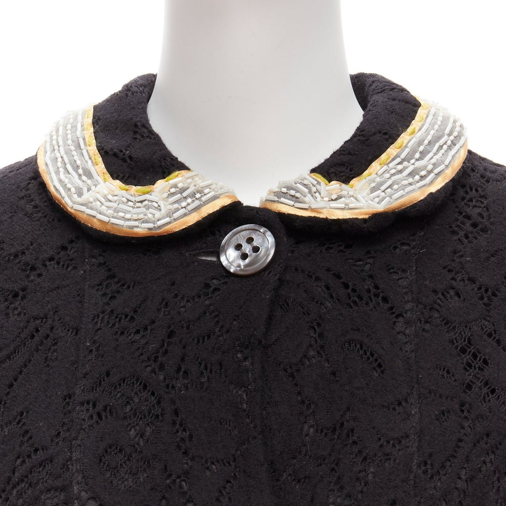 VOYAGE INVEST IN THE ORIGINAL LONDON red green beaded floral black wool coat L