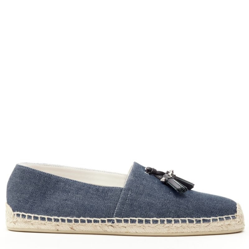 CHRISTIAN LOUBOUTIN Papiougomme blue denim stud tassel espadrille shoes EU42