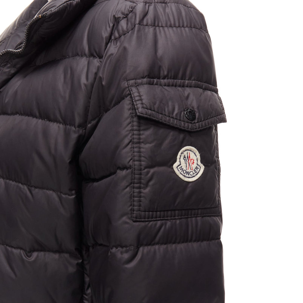 MONCLER Norme Afnor black quilted puffer zip front A line coat Sz3 L
