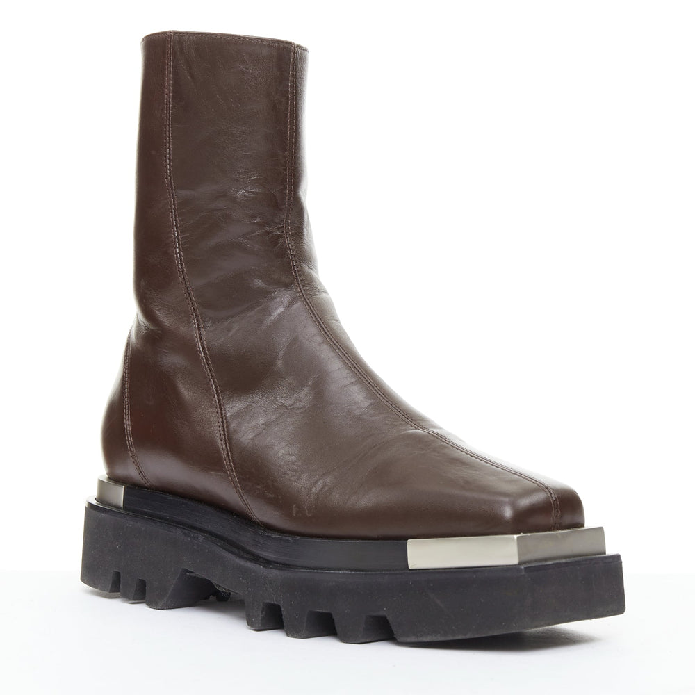 PETER DO Napa Moto tobacco brown metal square toe ankle boots EU38