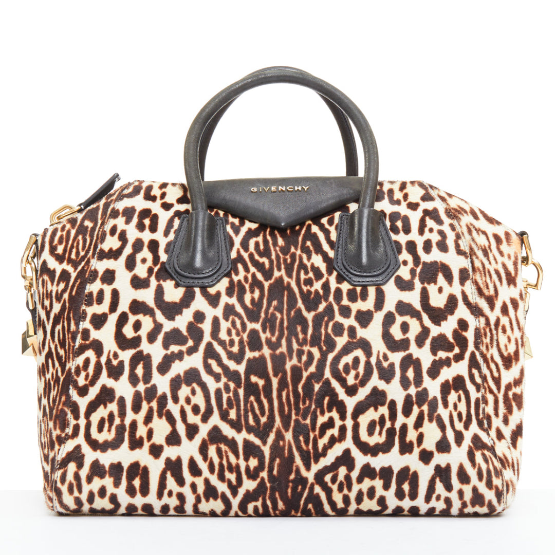 GIVENCHY Antigona brown leopard print calf skin silver logo top handle bag