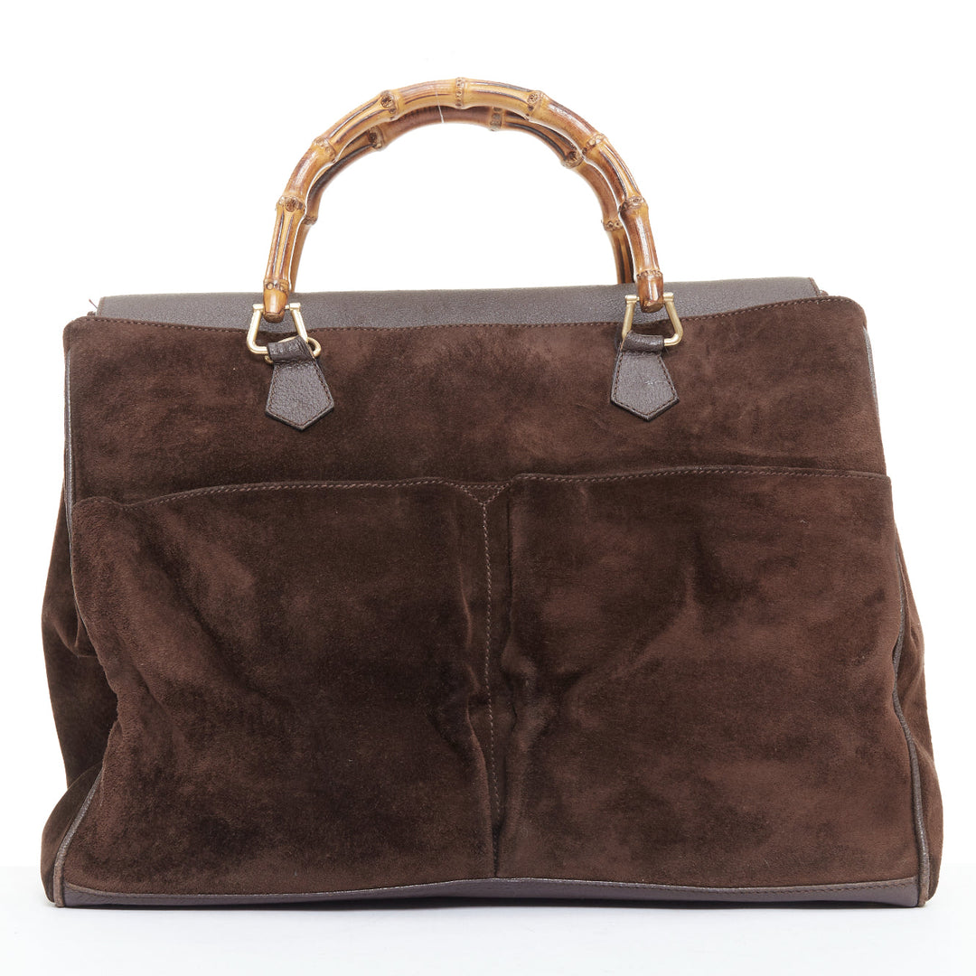 GUCCI Vintage Bamboo brown suede leather nude handle satchel bag