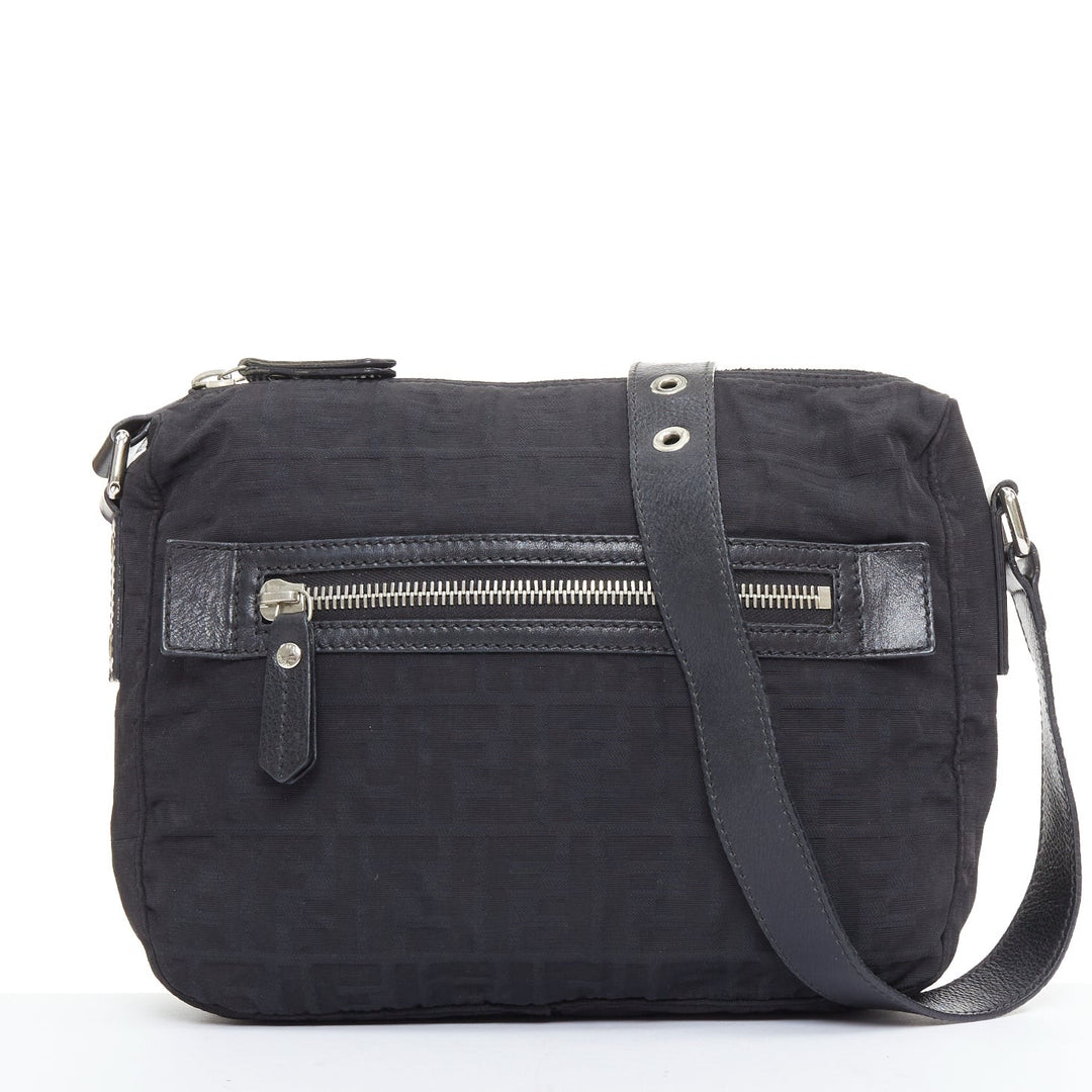 FENDI Vintage black FF Zucca monogram leather trim crossbody messenger bag