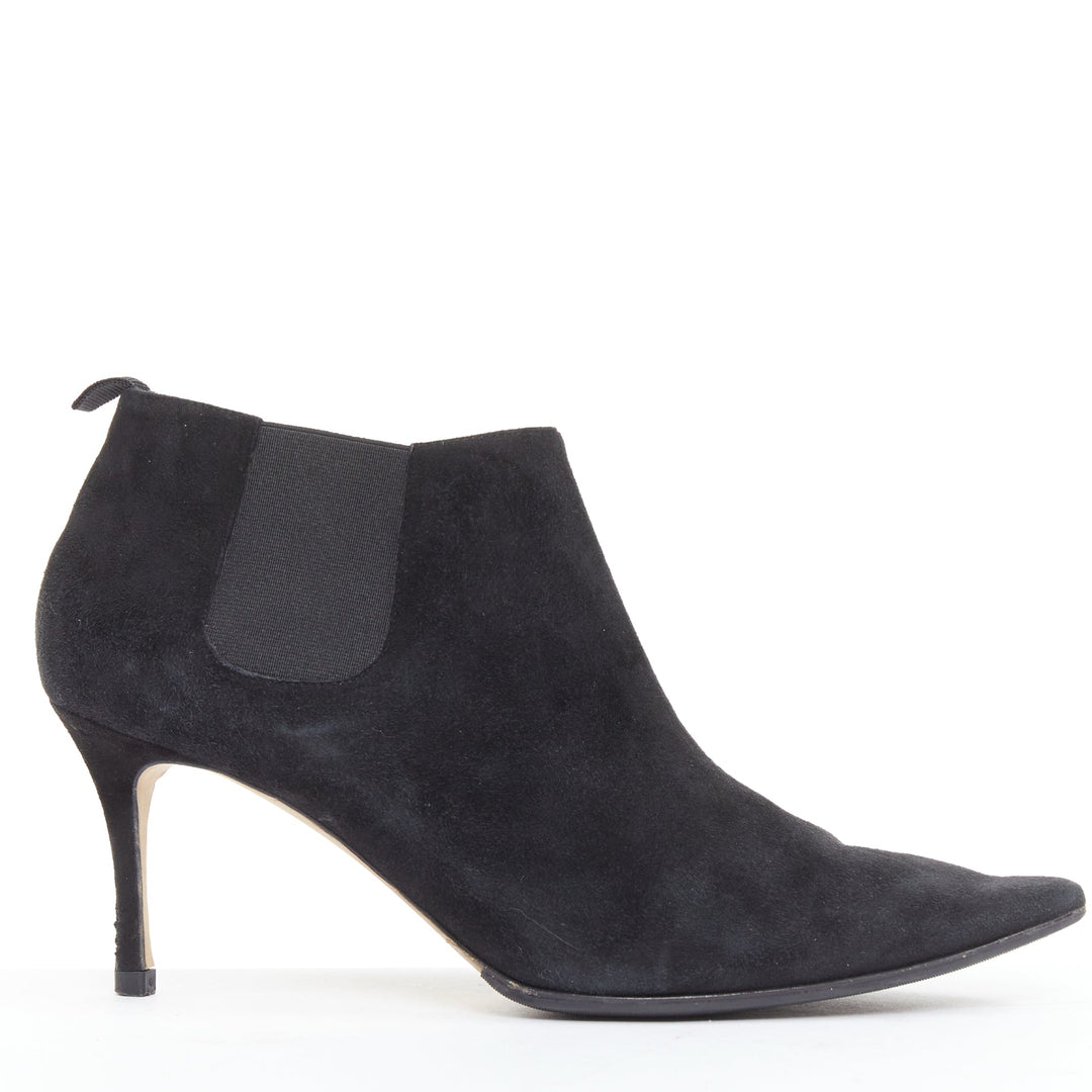 MANOLO BLAHNIK Vintage black suede pointy toes mid heel booties EU39.5