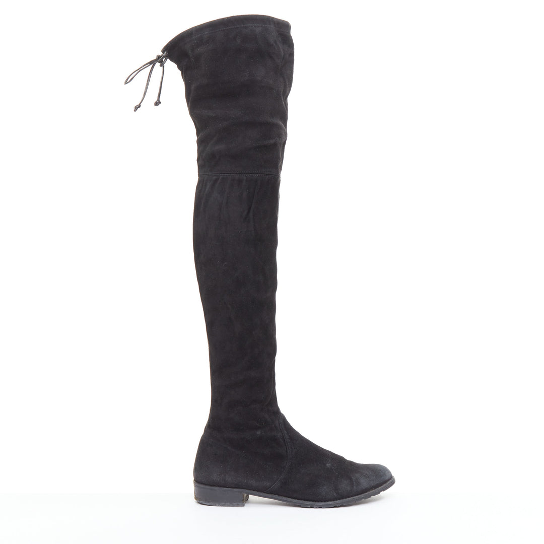 STUART WEITZMAN Lowland black suede drawstring top over knee flat boots EU38