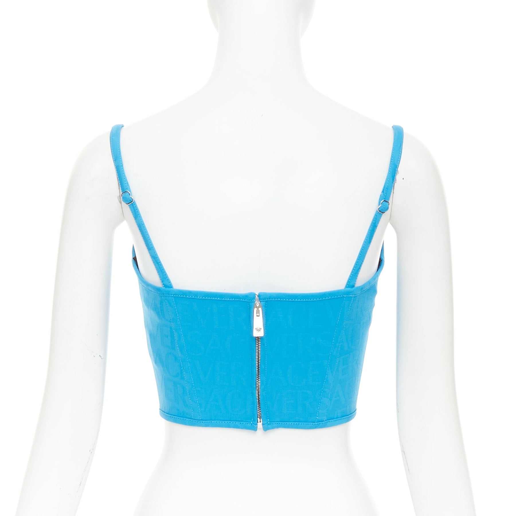 new VERSACE Medusa '95 Mediterranean Blue monogram boned silver buckle crop top IT38 XS