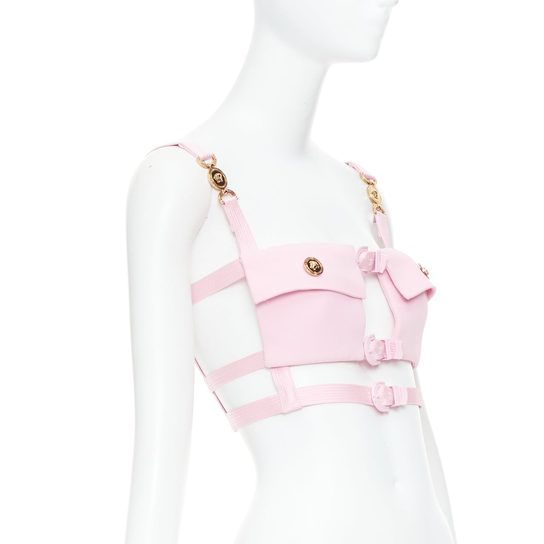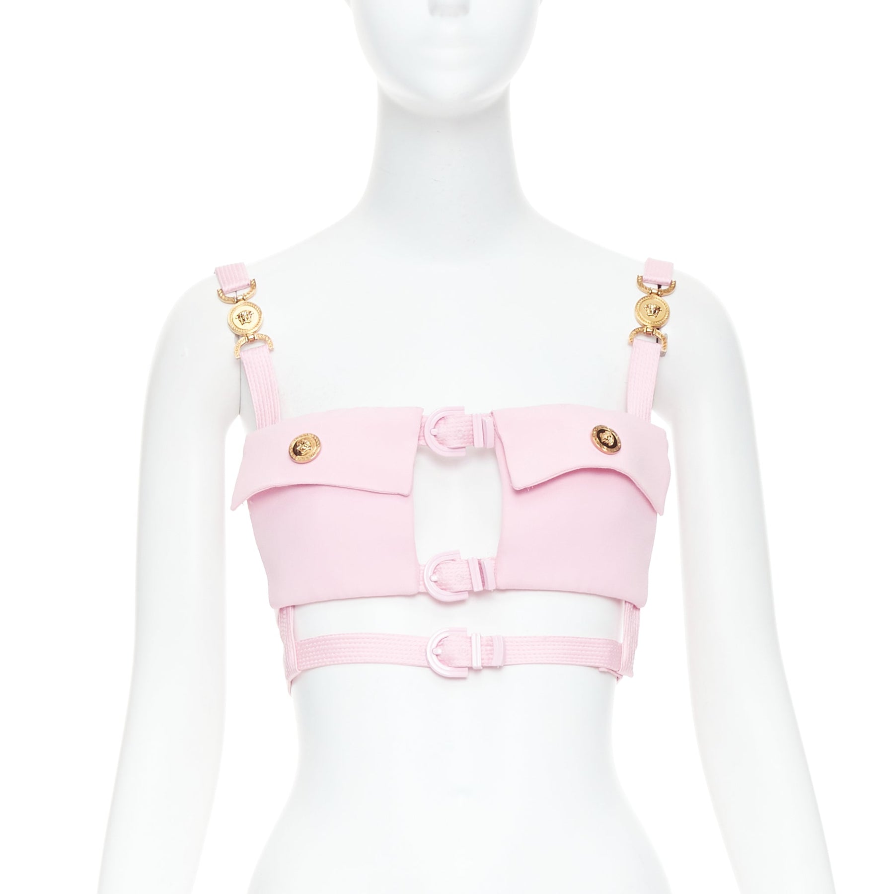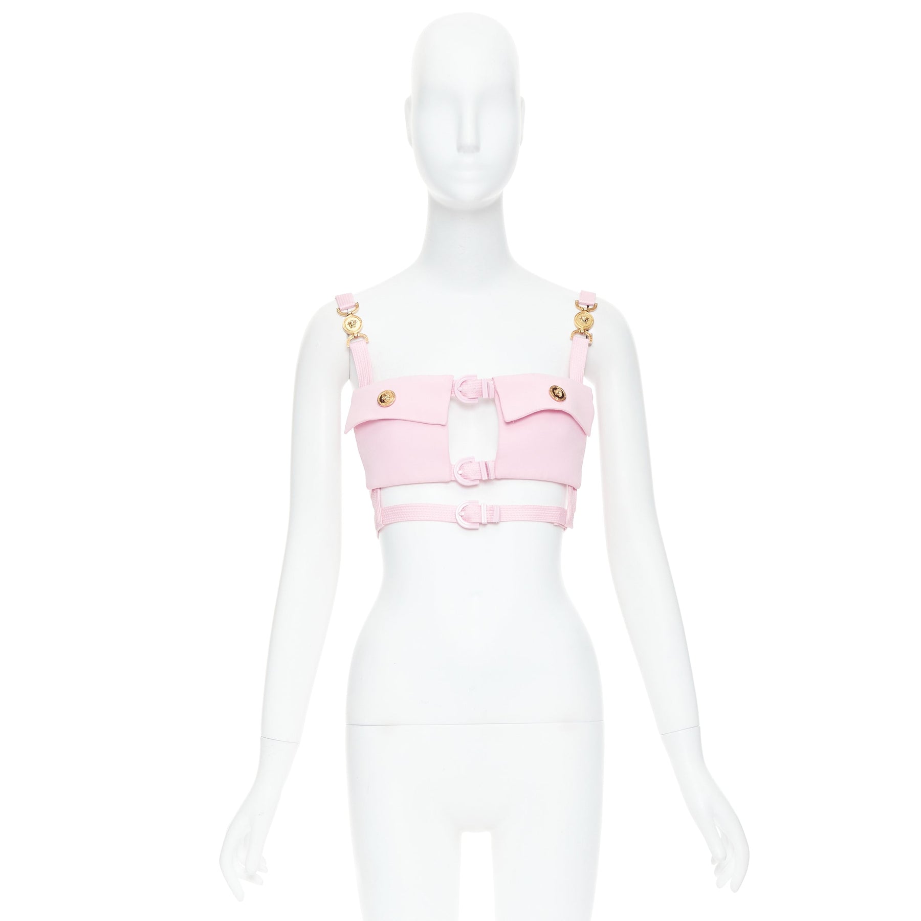 rare VERSACE Dua Lipa 2023 La Vacanza Runway pink bondage Enver top IT42 M