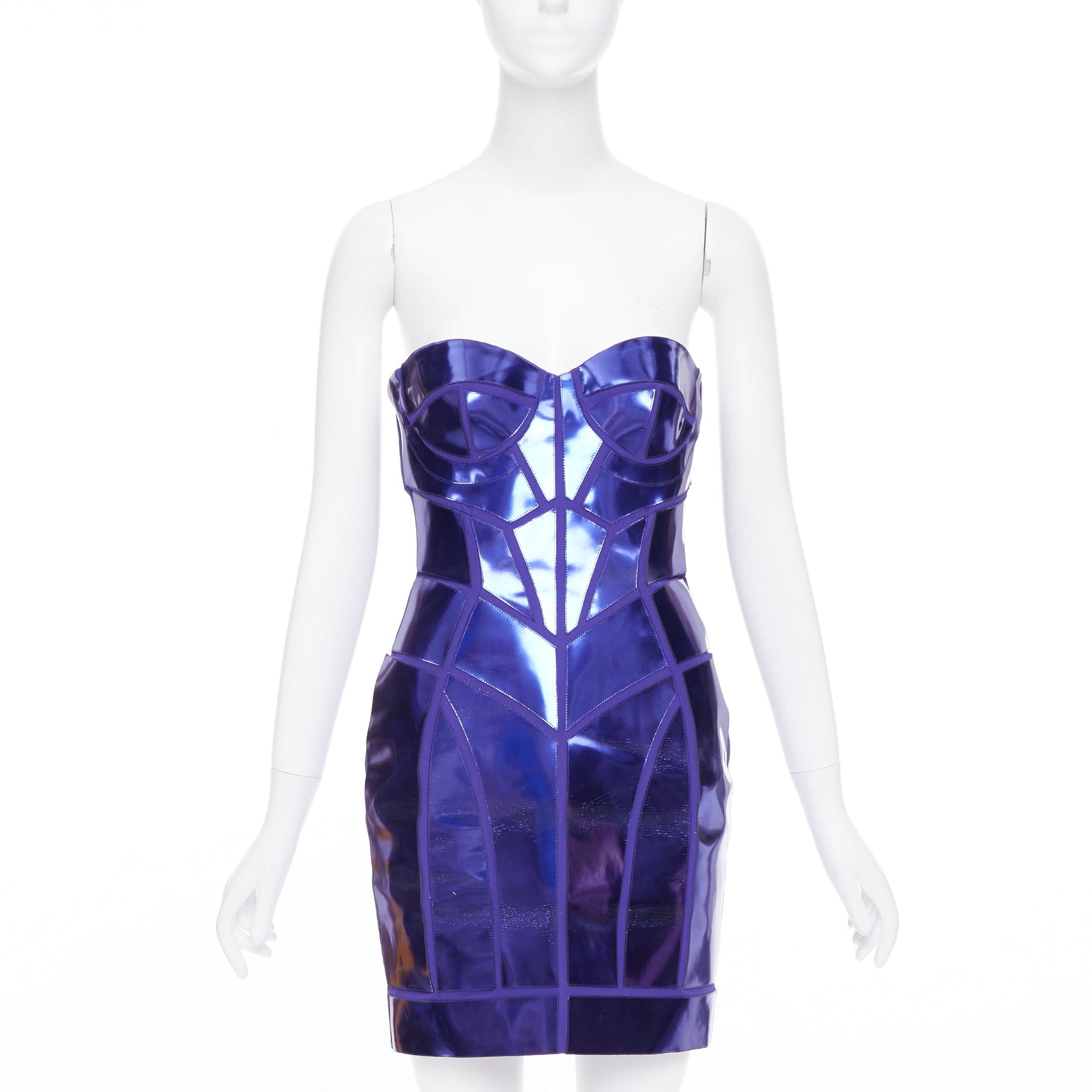 VERSACE 2010 Runway blue purple metallic silk leather corseted dress IT38 XS Katy Perry