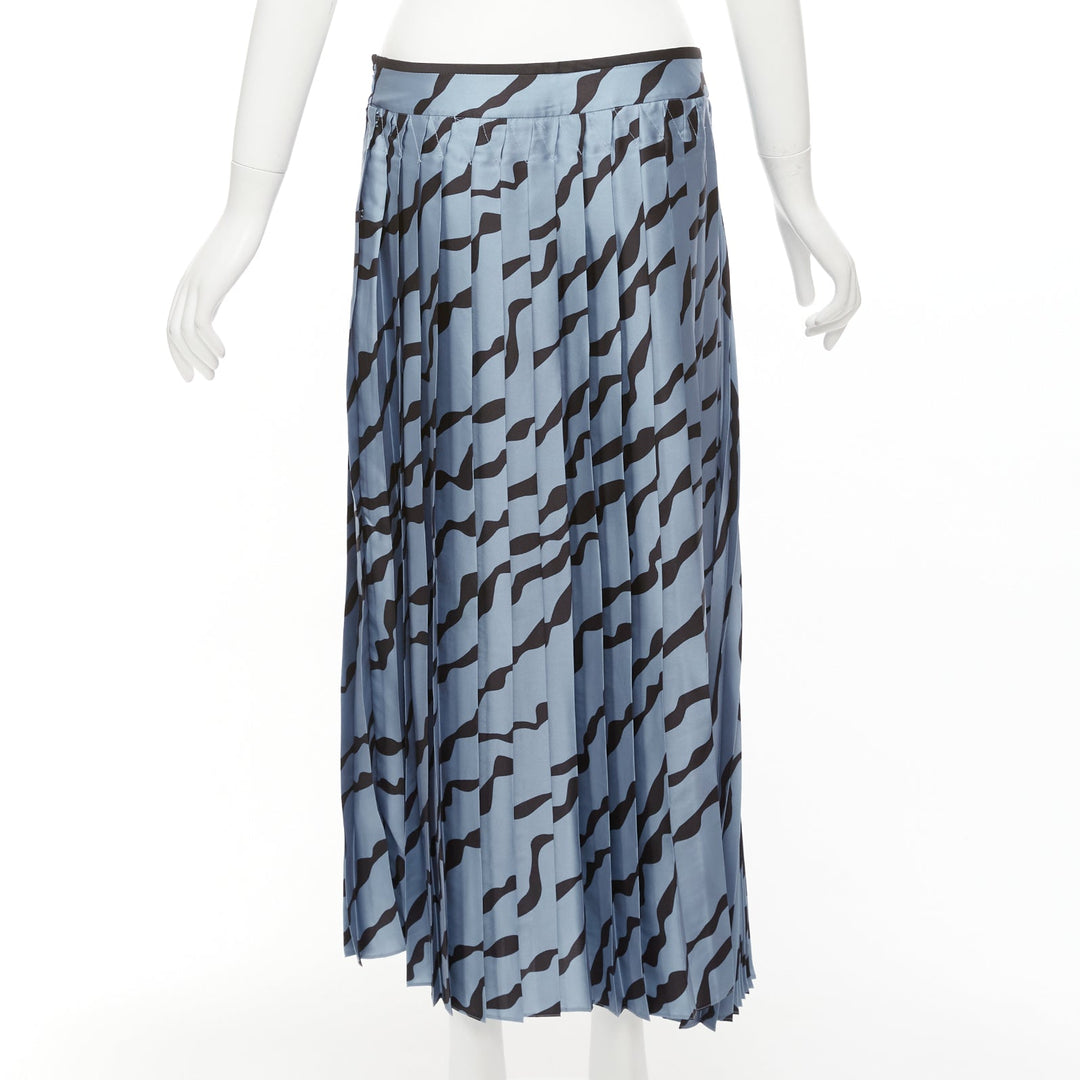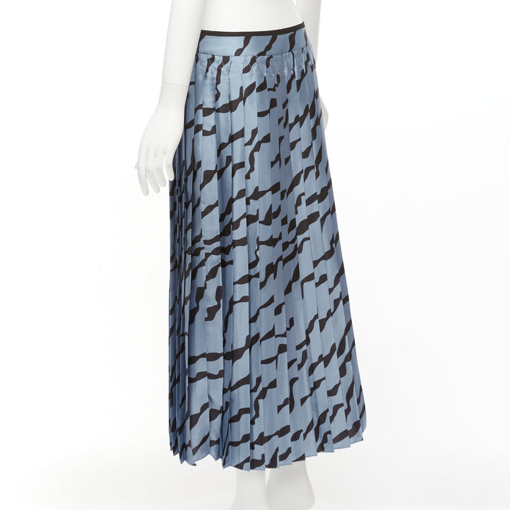VVB VICTORIA BECKHAM blue black diagonal print pleated bias hem skirt UK8 S
