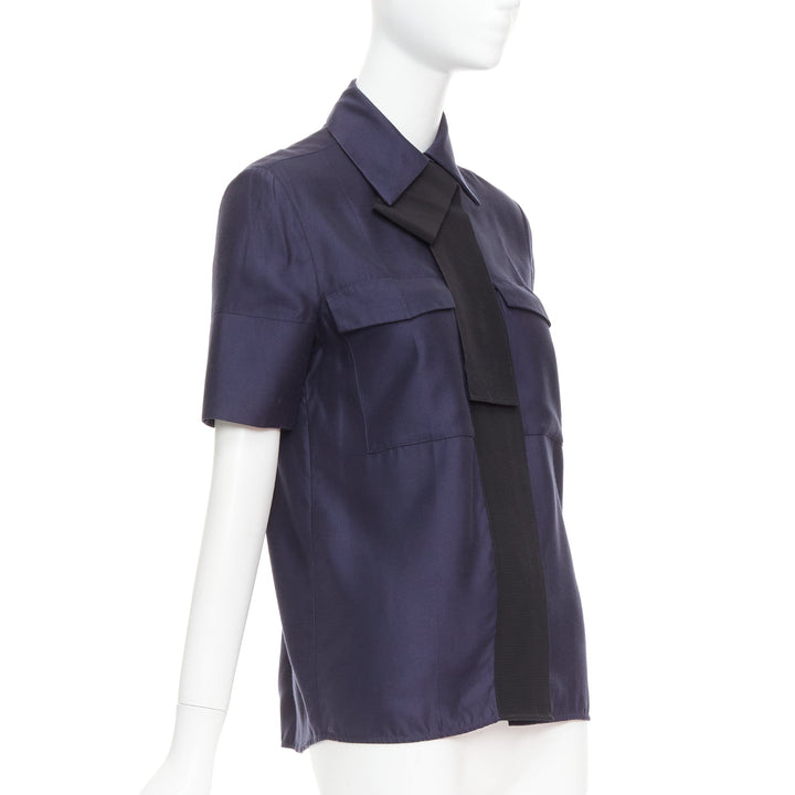VVB VICTORIA BECKHAM navy black trimmed boxy utility shirt UK6 S