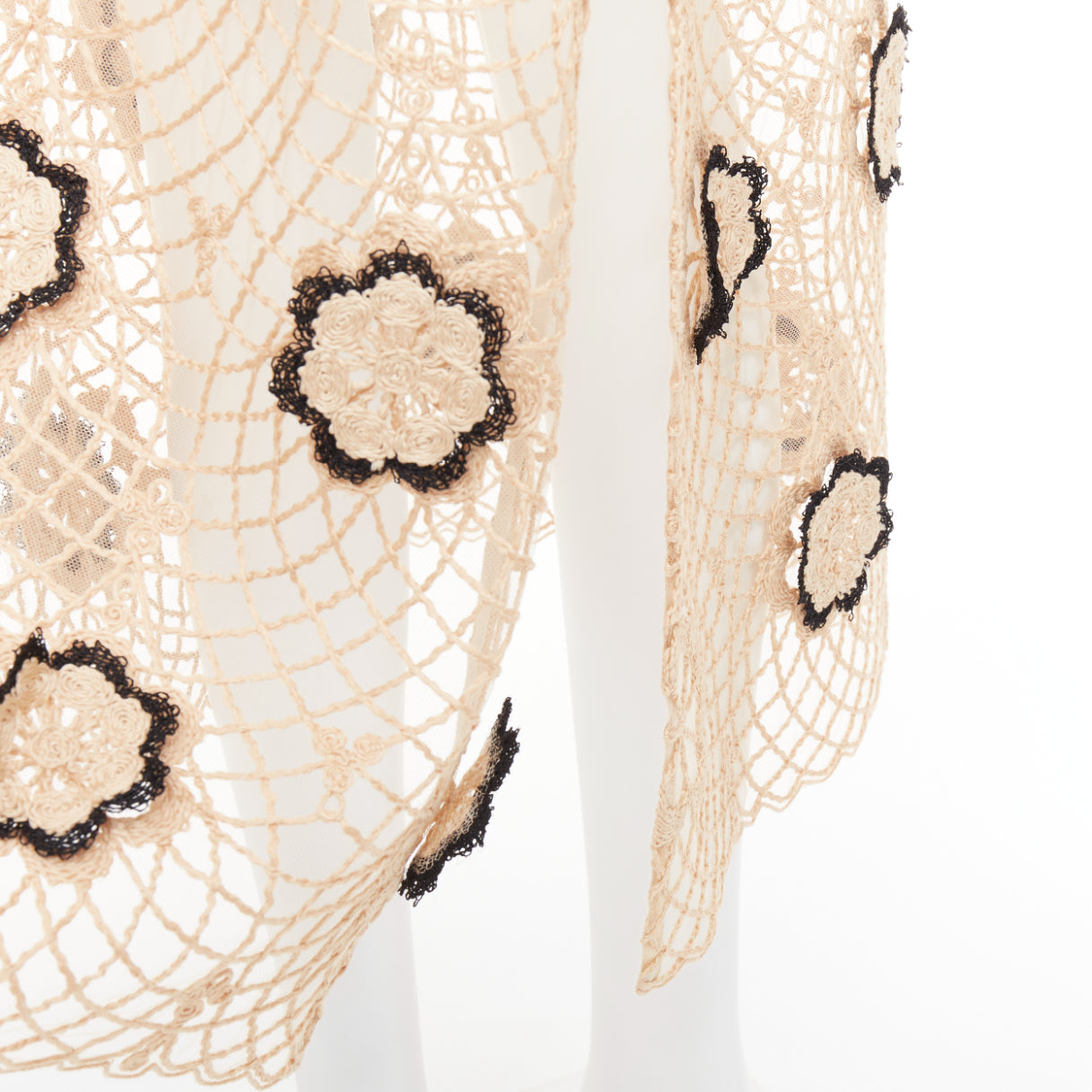 BEAUFILLE Zelle beige black braided jute black floral applique macrame dress L