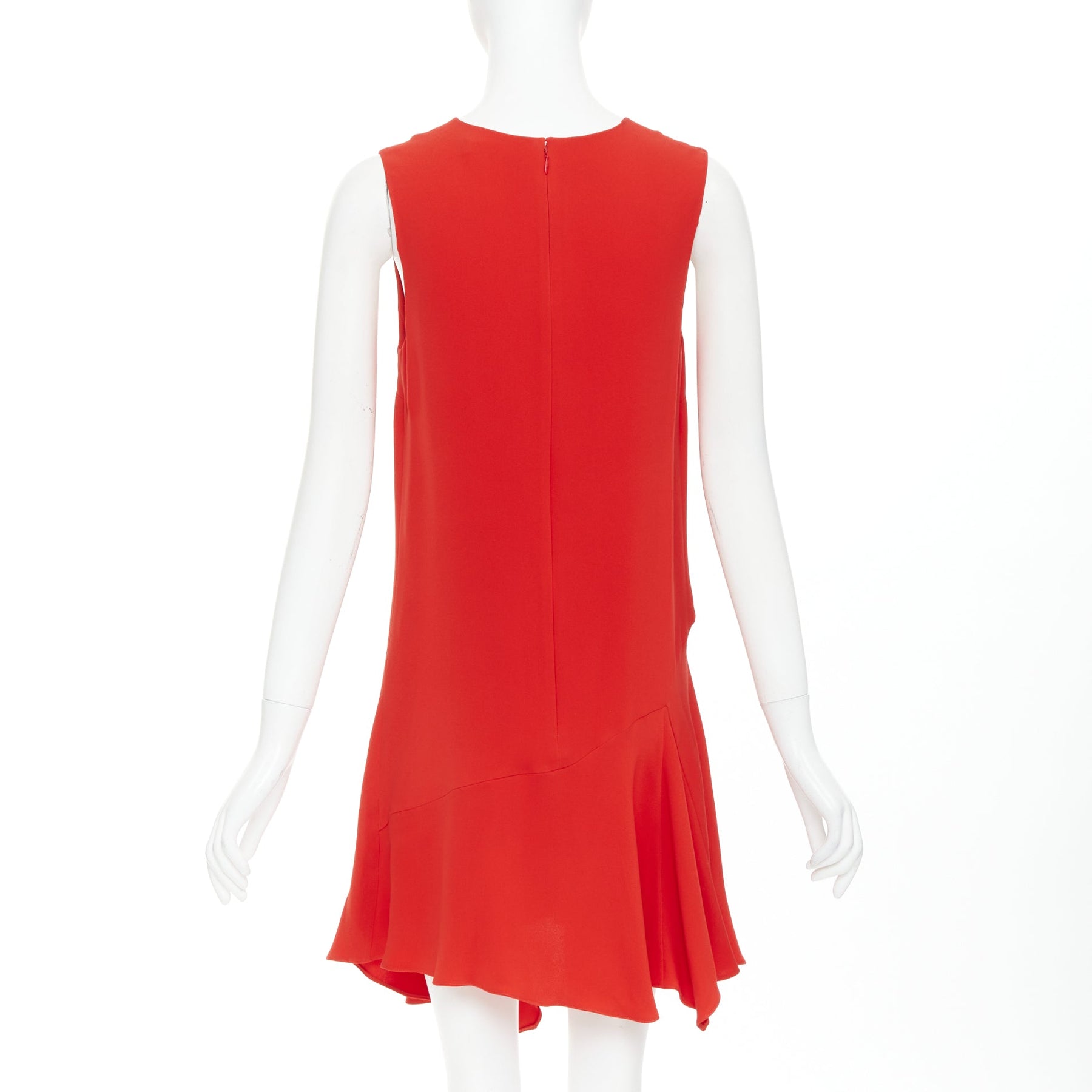 CHRISTIAN DIOR red silk blend round neck asymmetric handkerchief hem flutter dress FR40 M