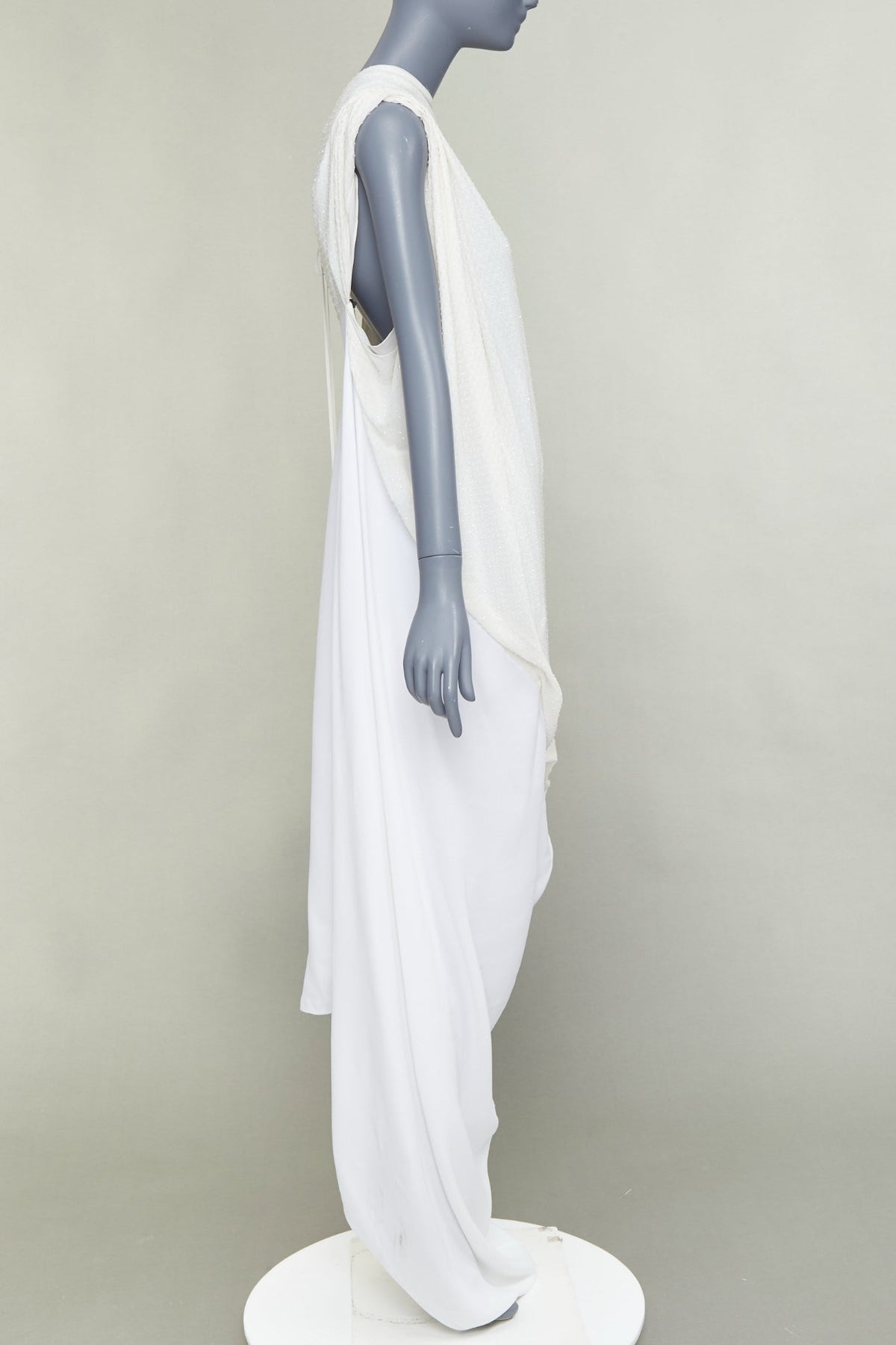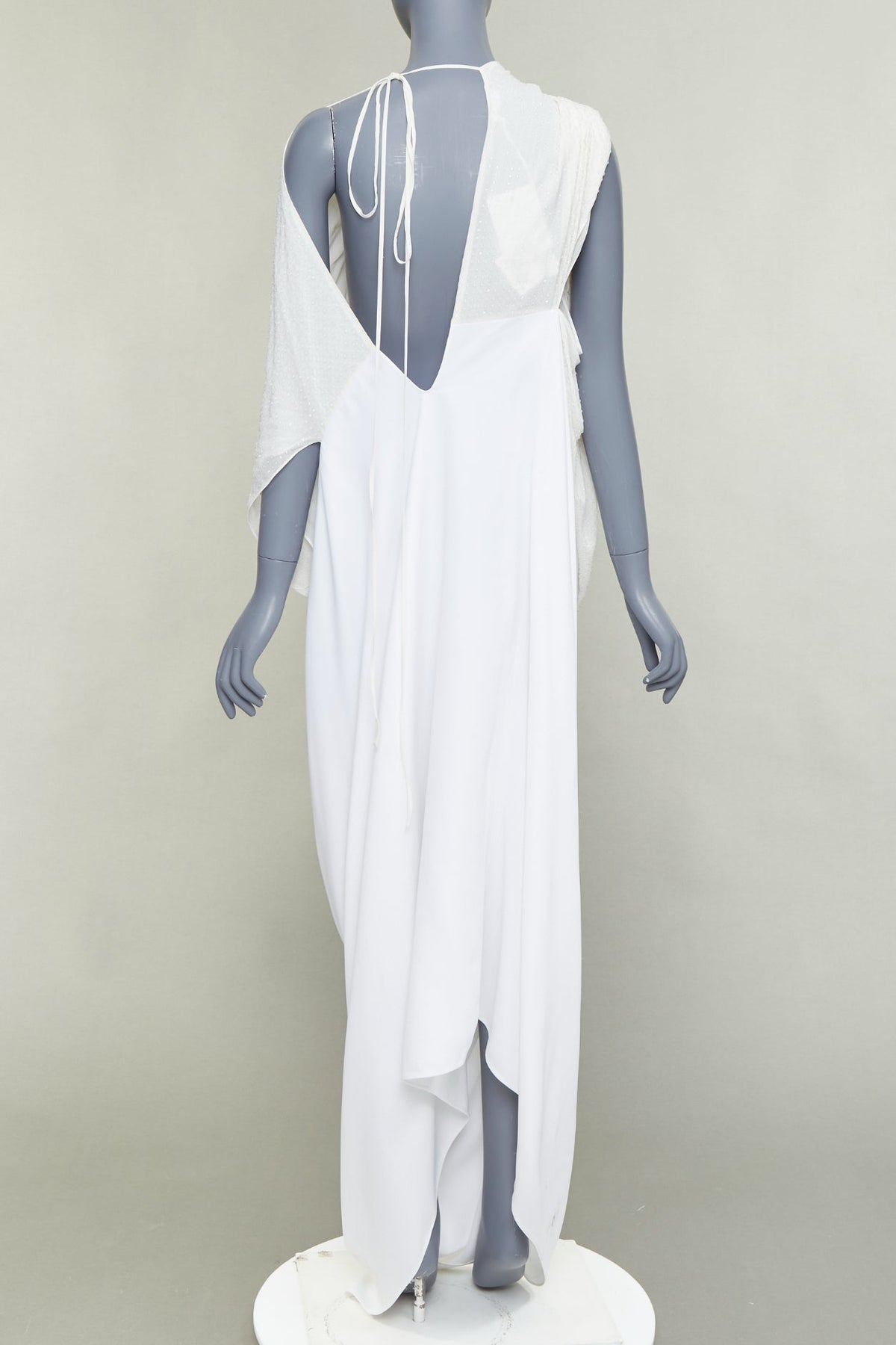 FERRAGAMO Maximilian Davis 2023 Bridal white crystal draped asymmetric gown IT4