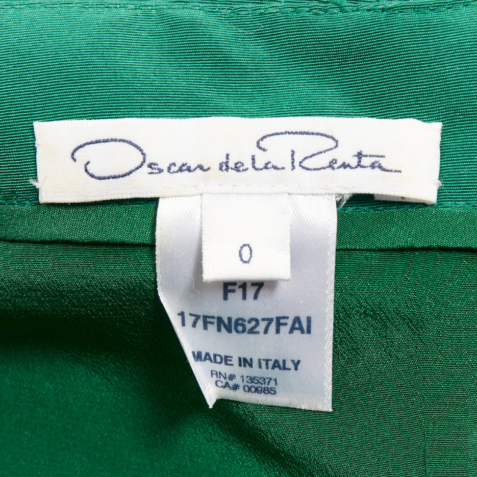 OSCAR DE LA RENTA F17 kelly green silk taffeta bateau neck belted dress US0 XS