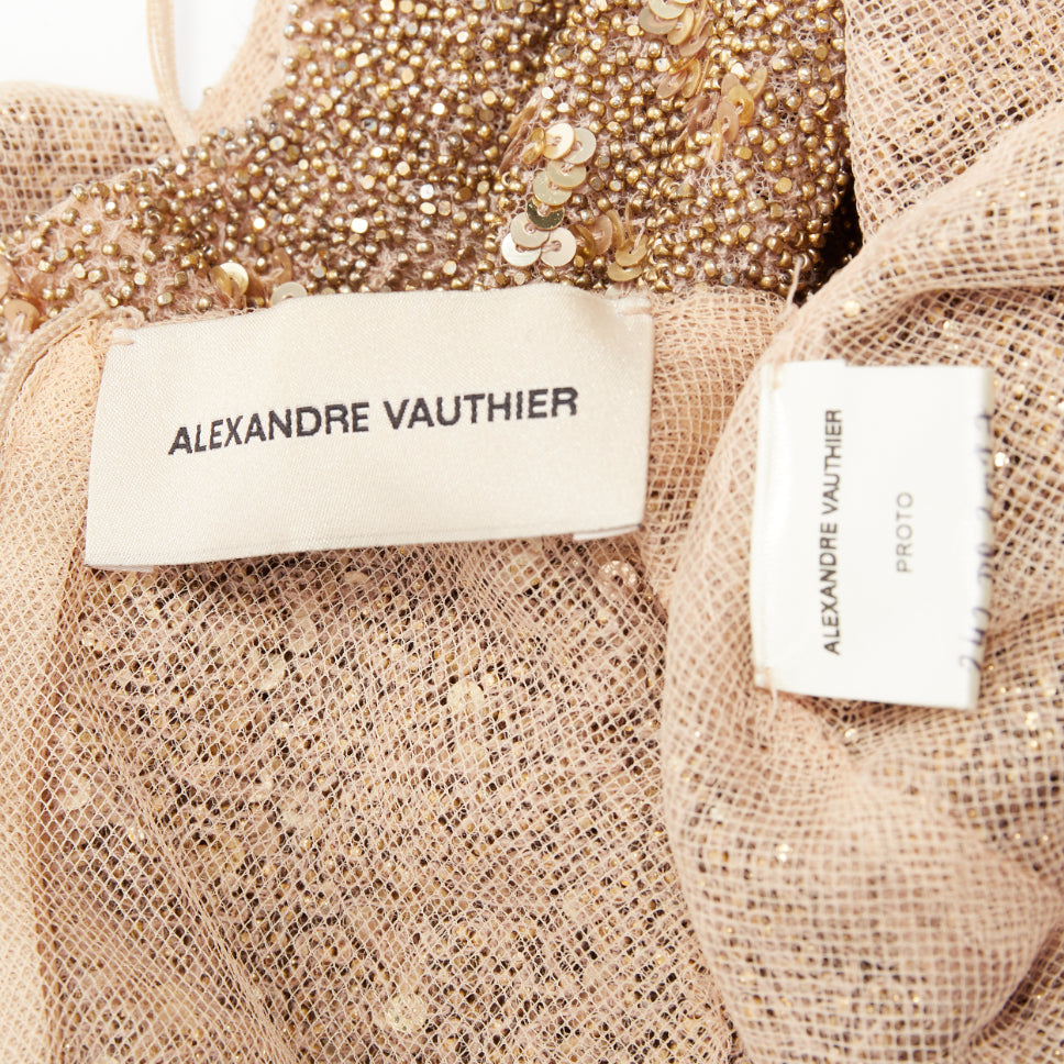 rare ALEXANDRE VAUTHIER COUTURE Prototype gold micro bead sequin embellished plunge neck evening gown
