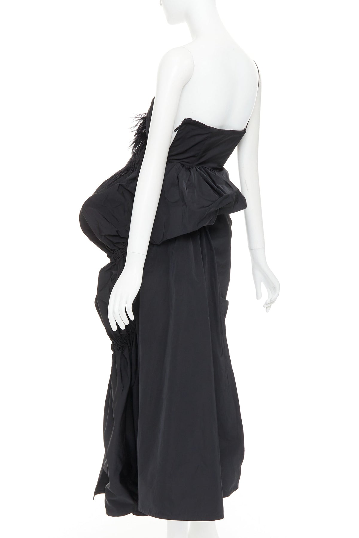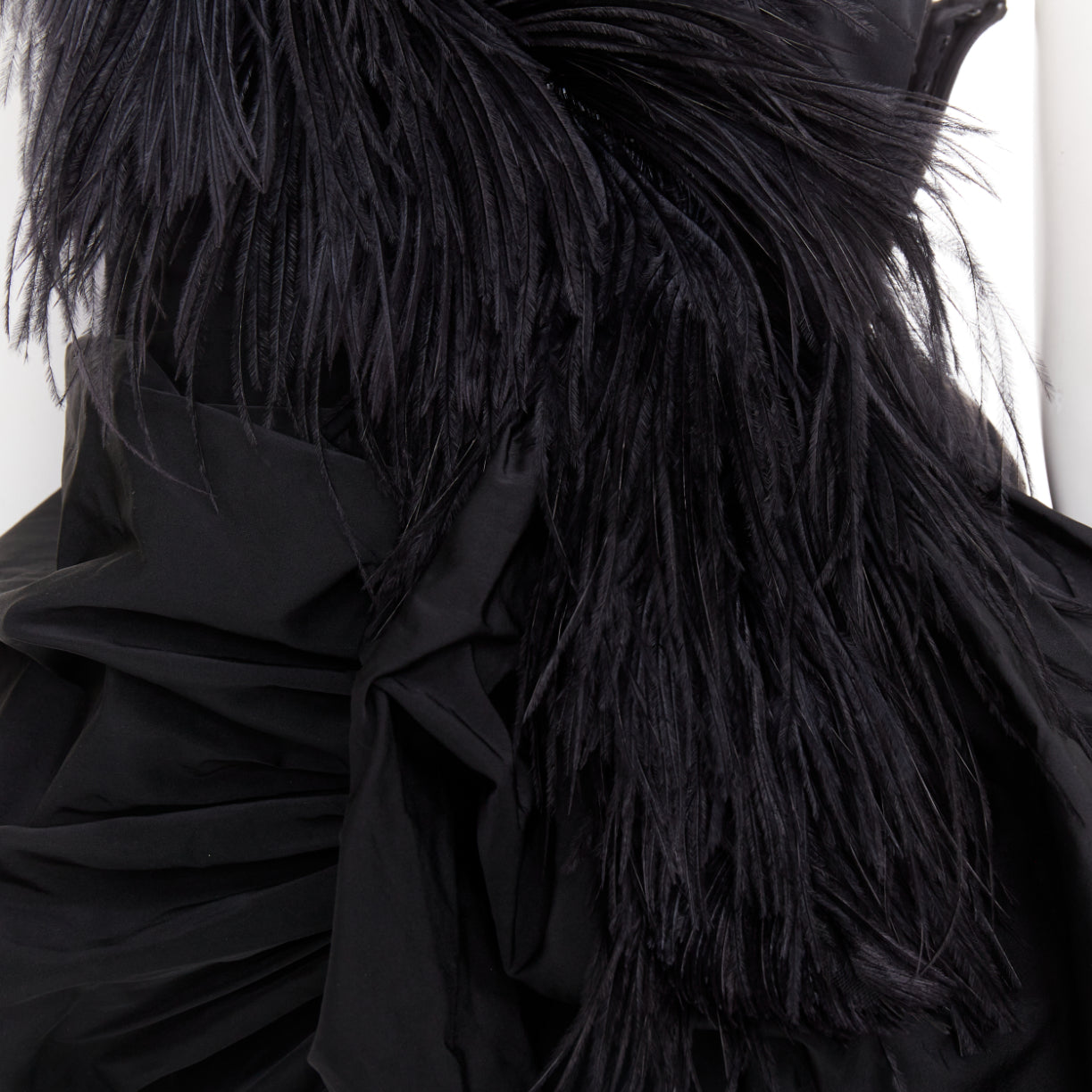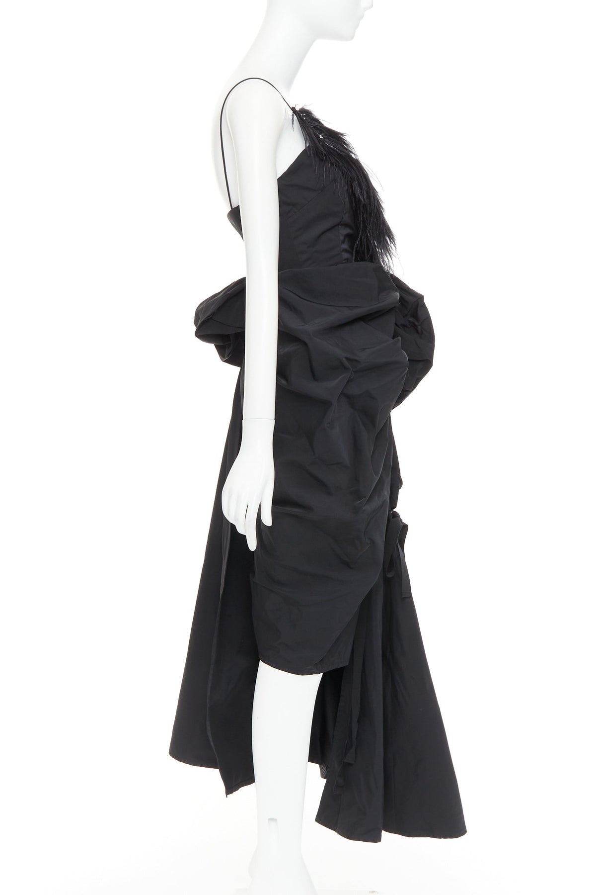 rare DRIES VAN NOTEN Christian Lacroix 2020 Runway black taffeta ostrich draped ruffle gown FR38 M