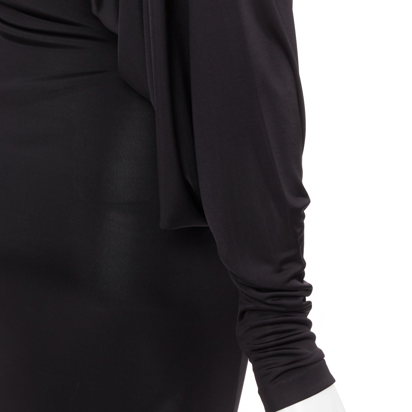 SAINT LAURENT 2023 black shiny viscose jersey ruched one sleeve long dress gown FR34 XS