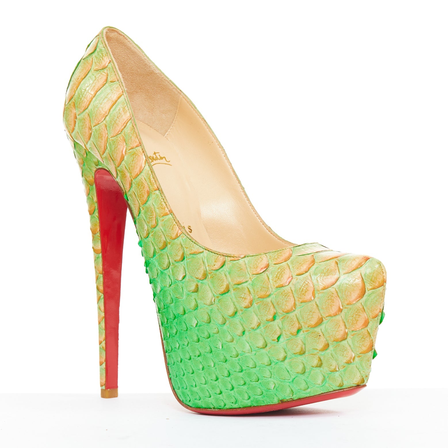 CHRISTIAN LOUBOUTIN Daffodile 160 Menthe ombre green scaled platform heels EU36.5