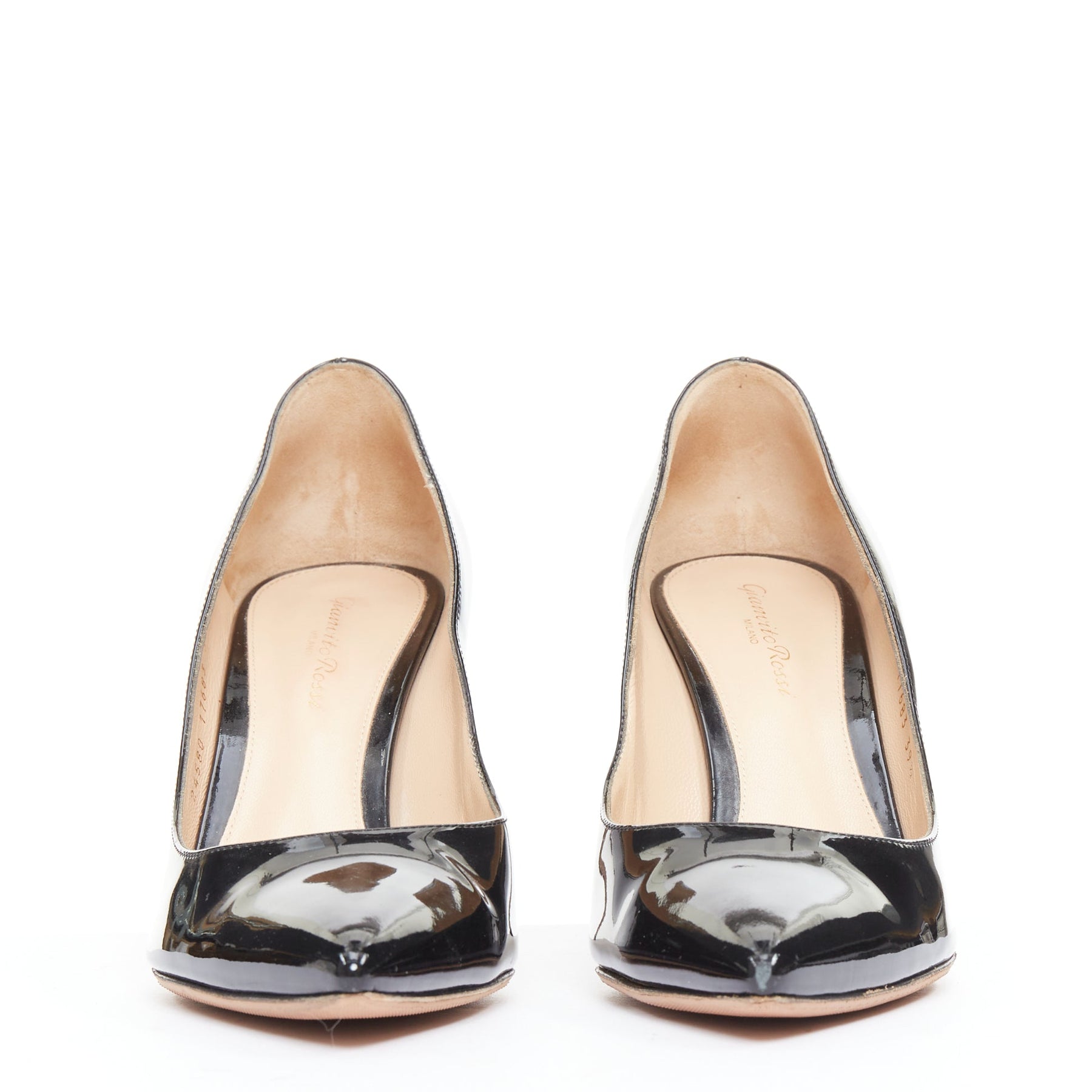 GIANVITO ROSSI black patent leather pointy toes stiletto heel pumps EU39.5