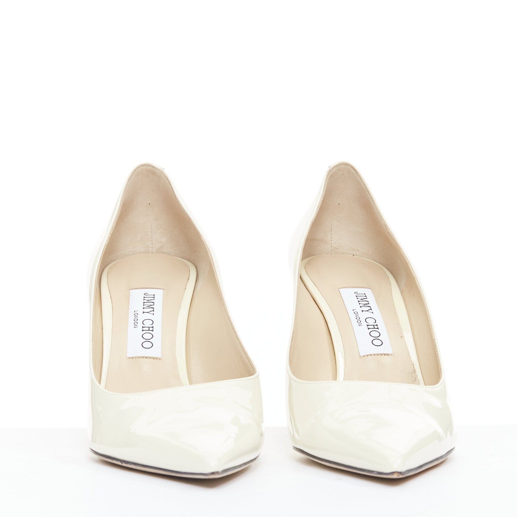 JIMMY CHOO Love 85 Latte cream patent JC emblem pumps EU39.5