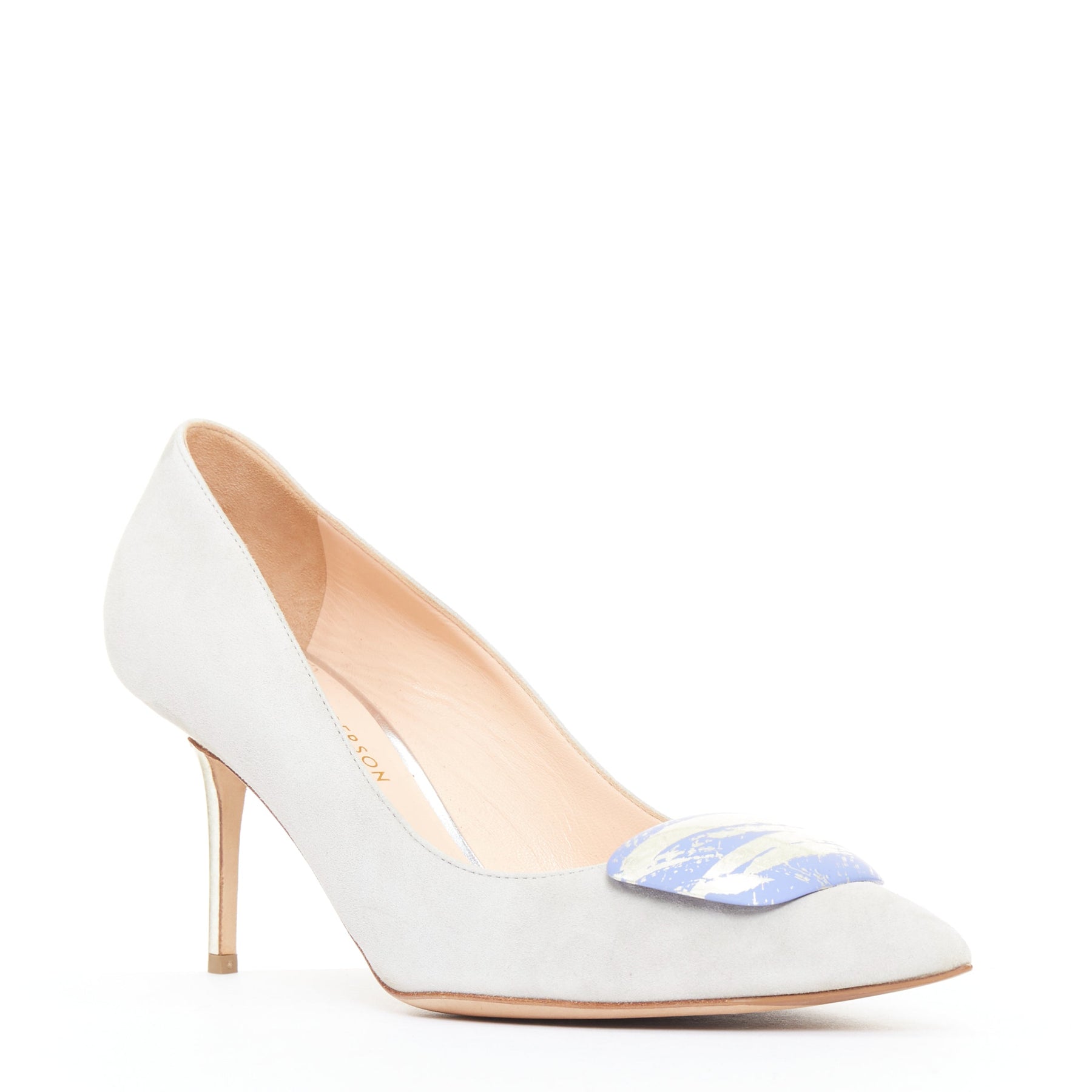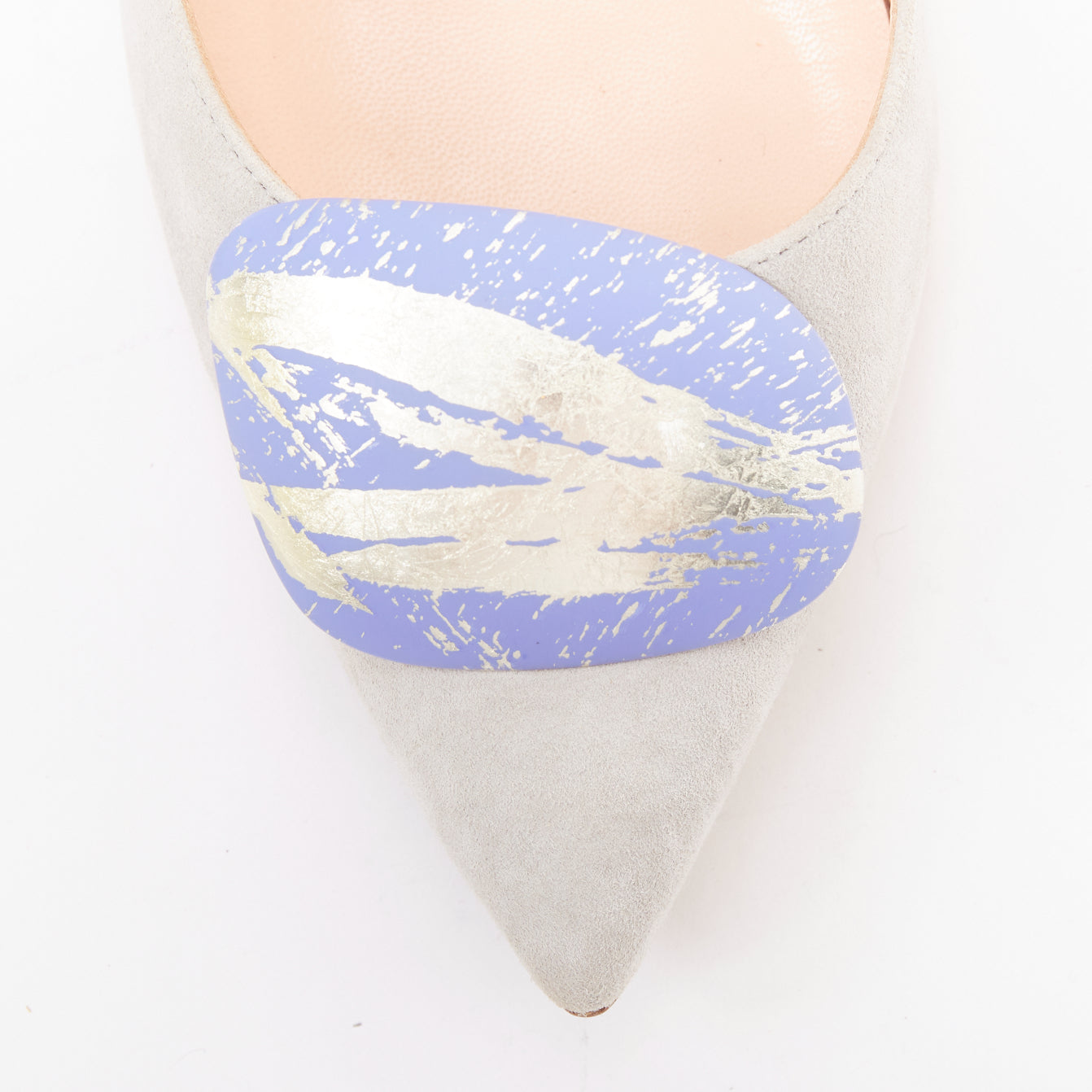 RUPERT SANDERSON New Nada grey suede purple Arty buckle pumps EU38