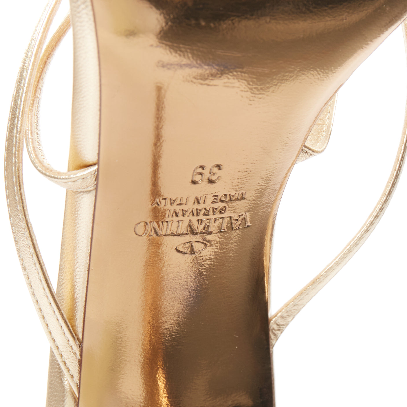 VALENTINO Rockstud gold leather studded simple strappy sandals EU39