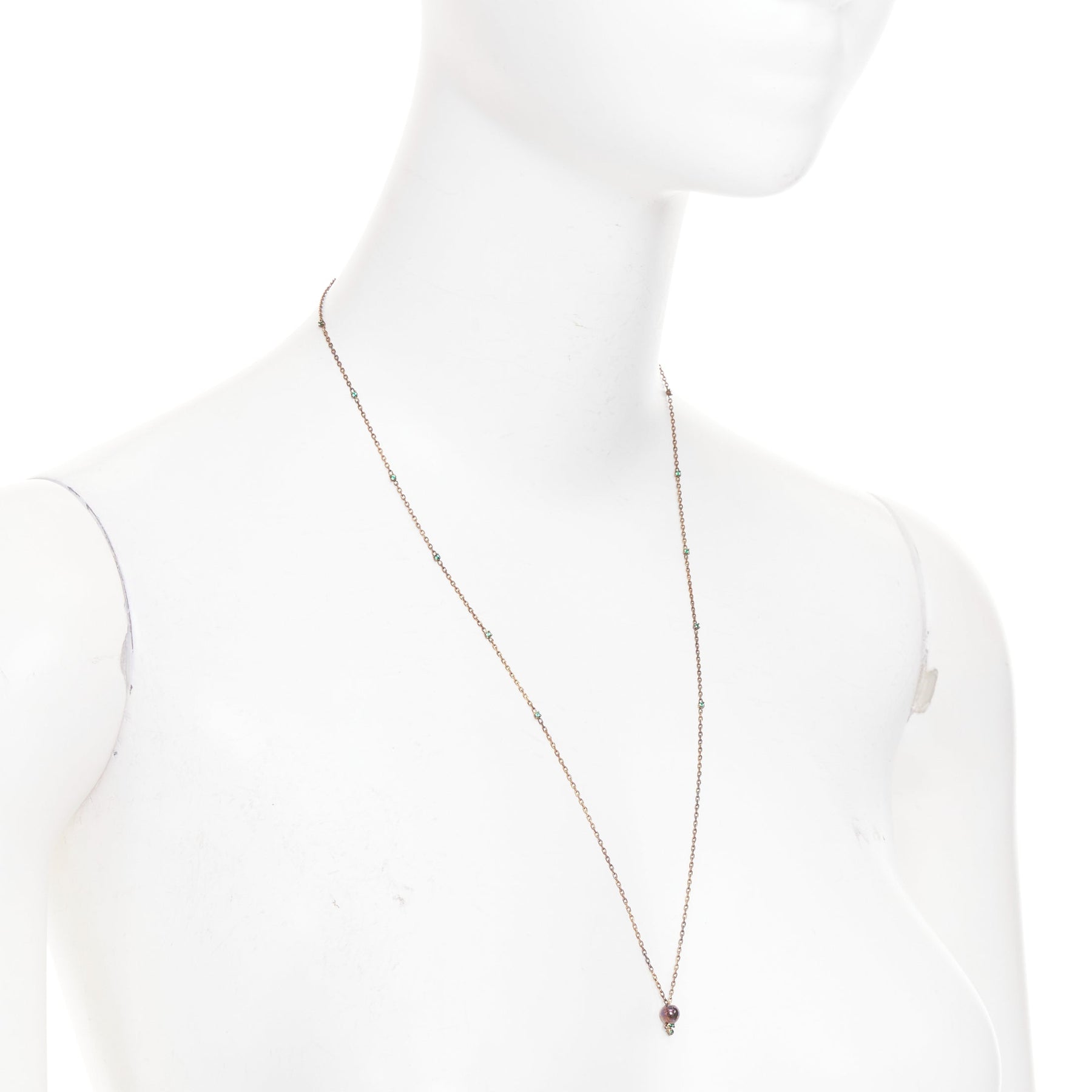 BOTTEGA VENETA Daniel Lee copper tone green crystal stone station pendant princess necklace