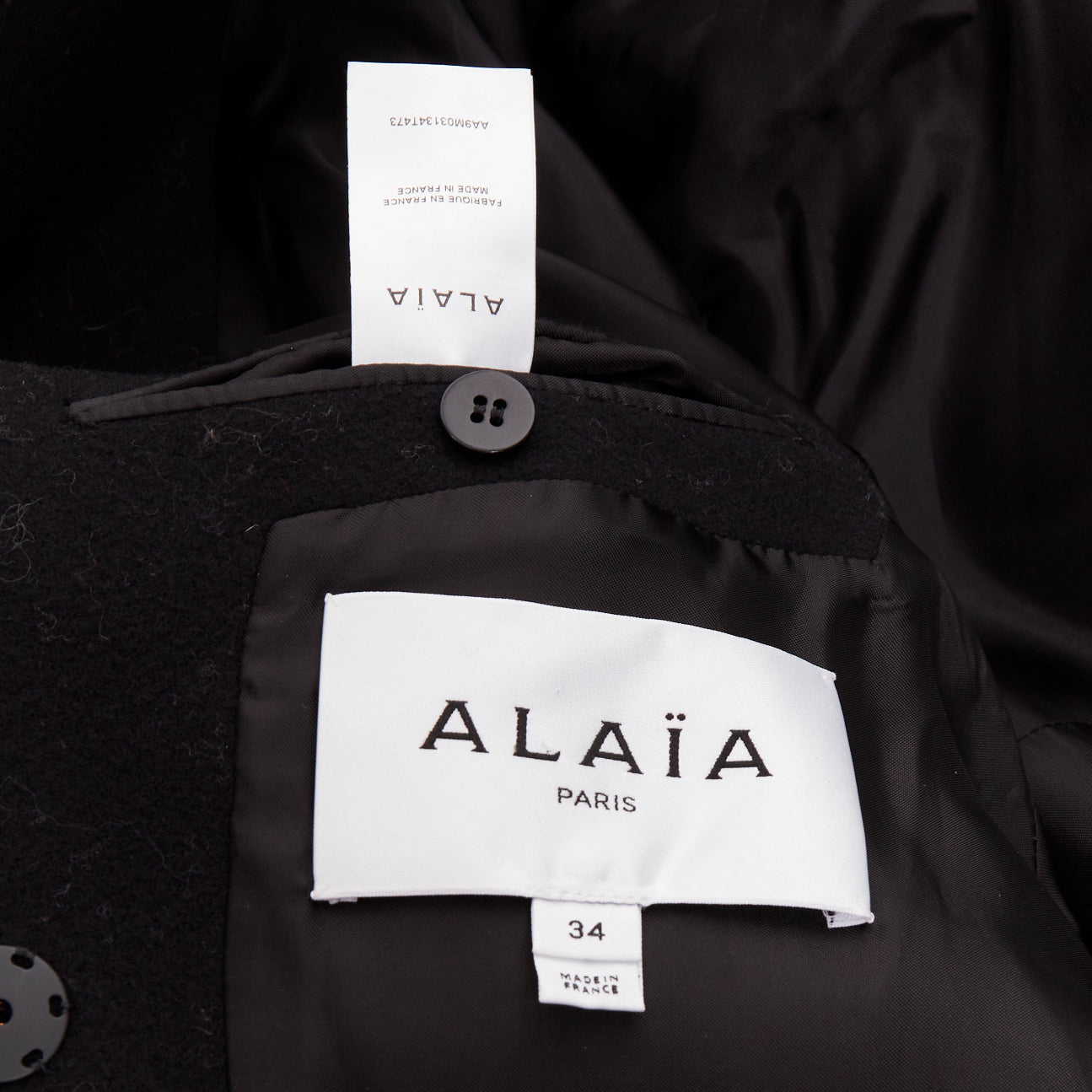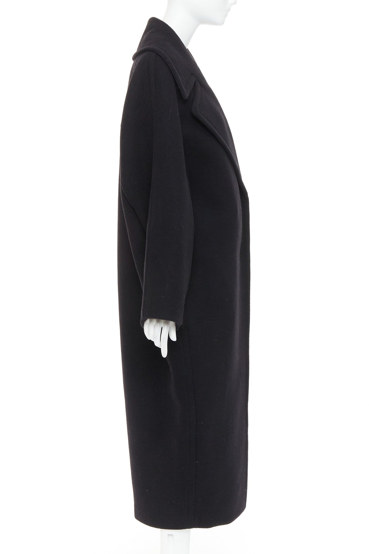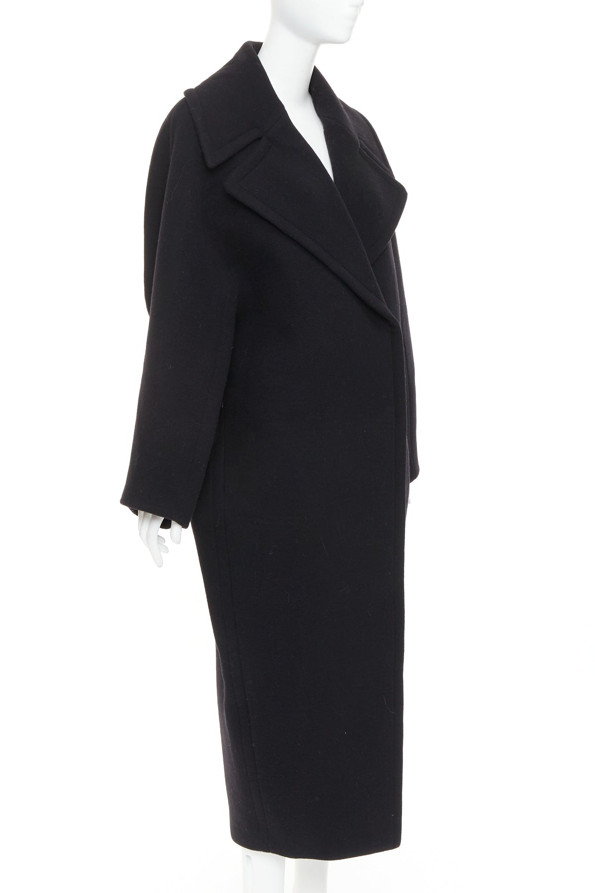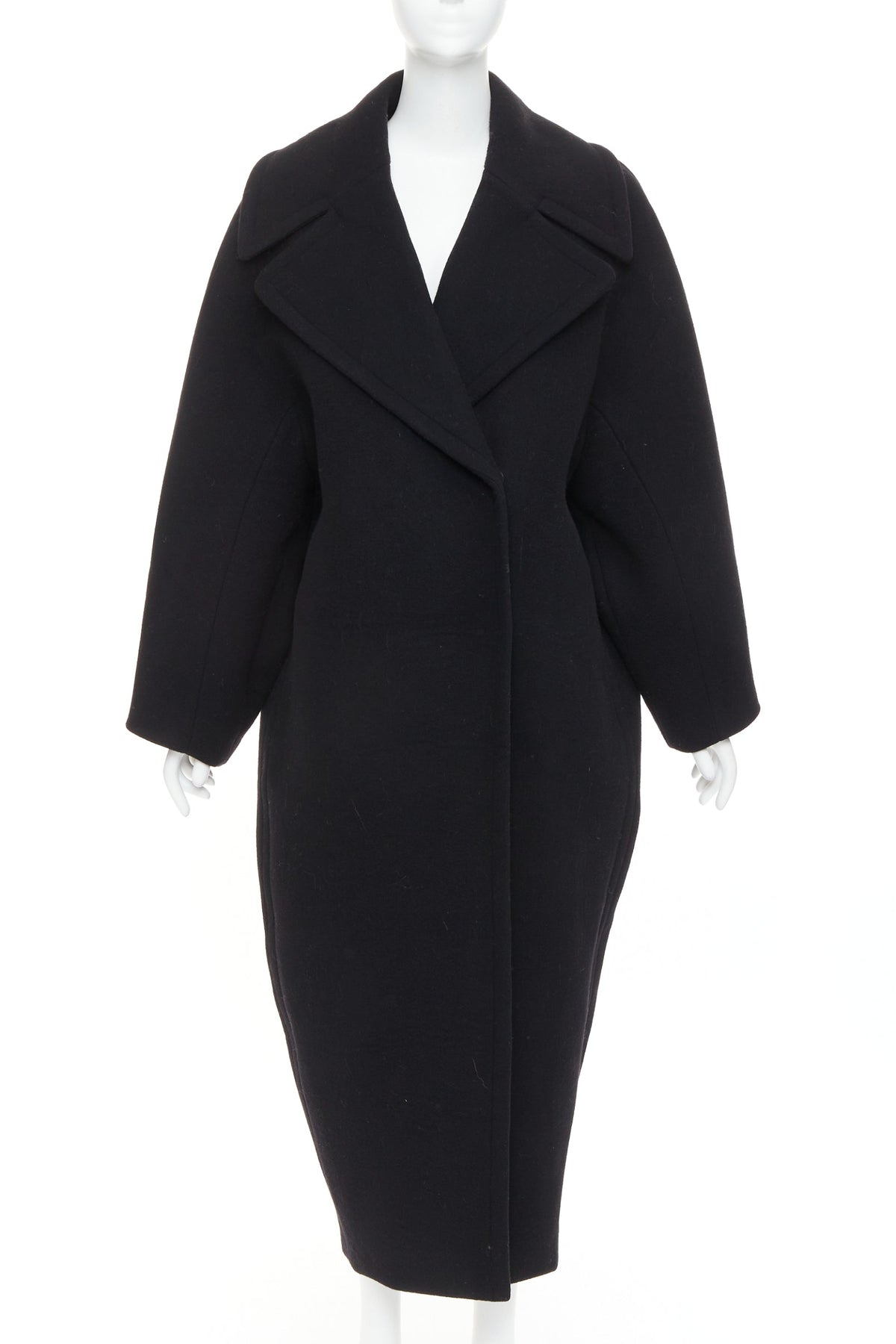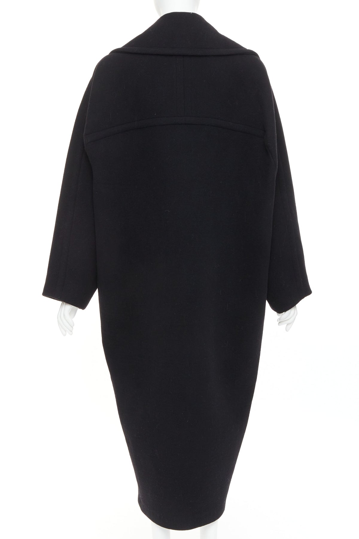 ALAIA black 100% double faced virgin wool oversized cocoon egg shaped coat FR34 XS