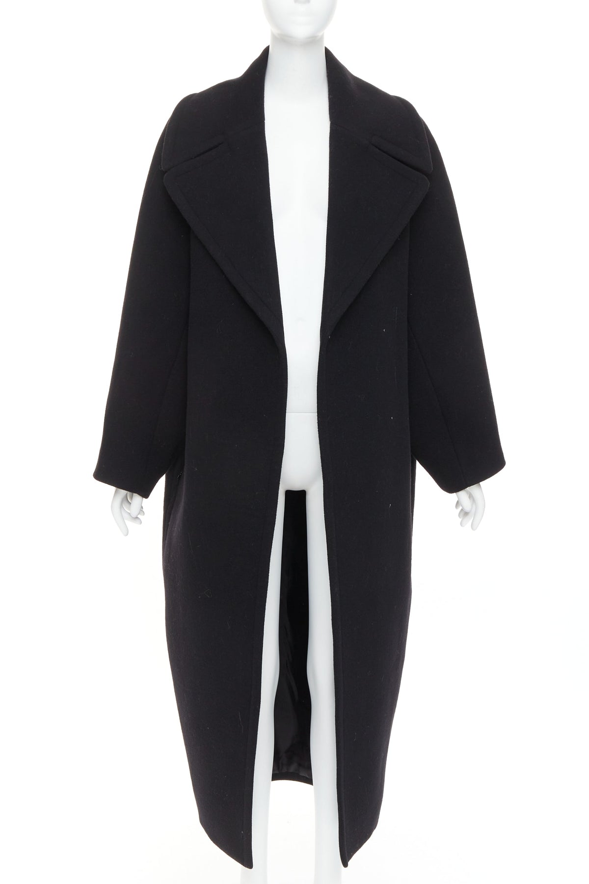 Extra Details: This distinctive style from the luxury fashion house is known for its dramatic volume and a sculptural, egg-shaped silhouette that is typical of the brand's design philosophy. The coat has a concealed front closure to maintain the clean, rounded shape of the design. Dual concealed side zip pockets.